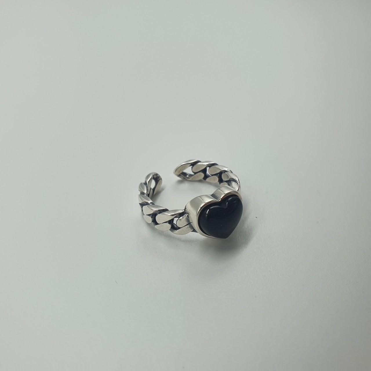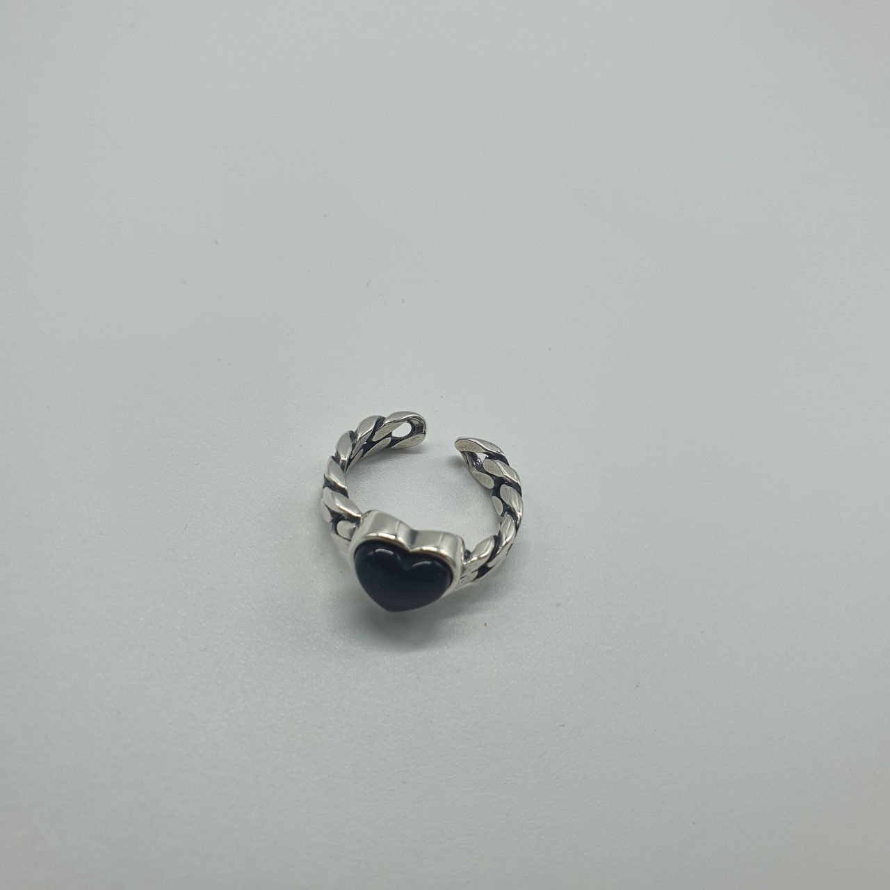 品名:은제품ㅡ체인 오닉스하트 트임반지 ◎※☞颜色:실버 ◎※☞尺寸:FREE ◎※☞材质:银 0% 翻译