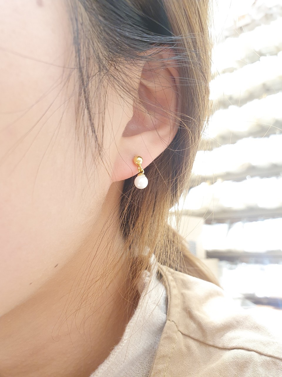 品名:은제품---한개은볼 진주 연결 귀걸이