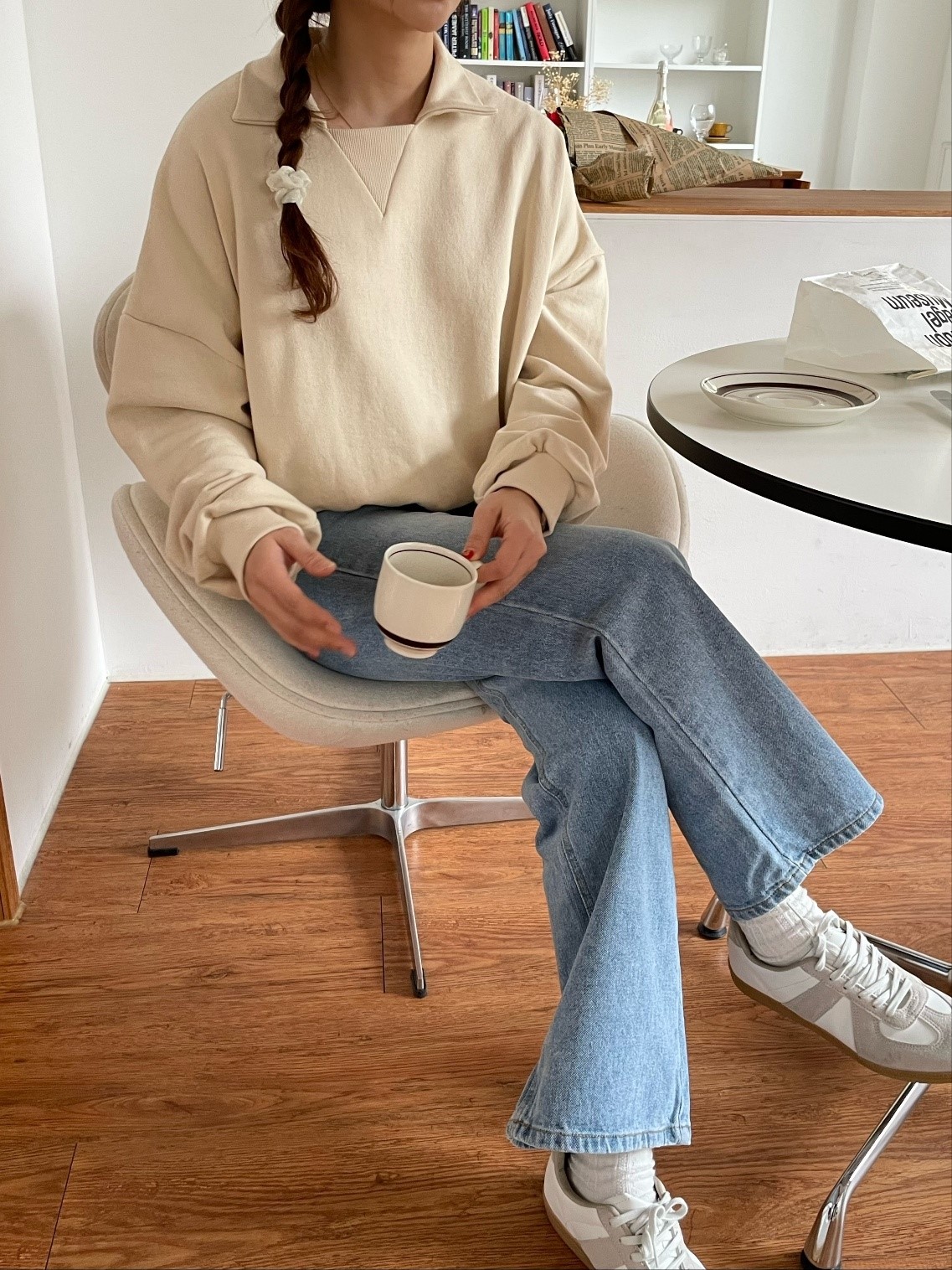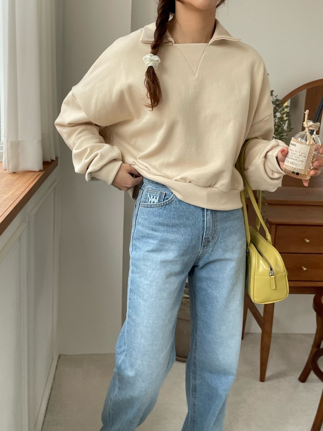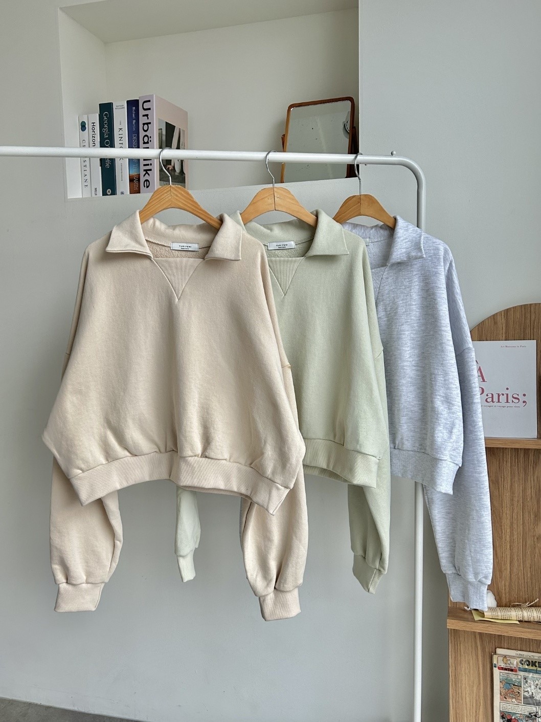 品名:카라쭈리 맨투맨 ◎※☞颜色:민트, 백메란지, 크림 ◎※☞尺寸:FREE ◎※☞材质:纯棉 100% 翻译