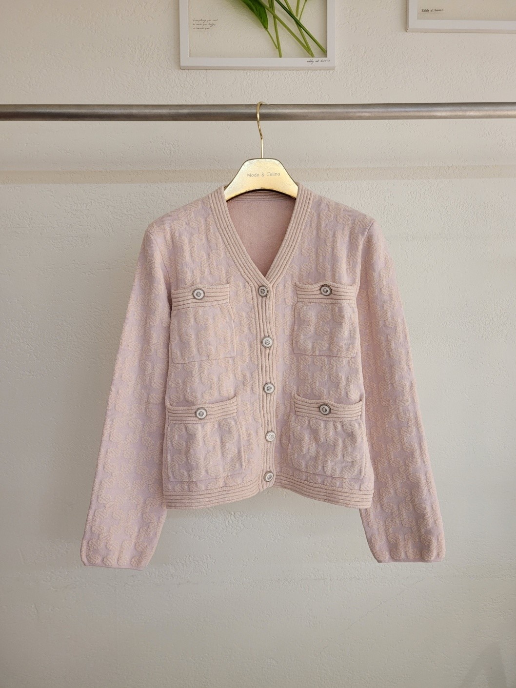 品名:럭셔리 연핑크4포켓 니트 가디건 ◎※☞颜色:핑크 ◎※☞尺寸:55, 66, 77 ◎※☞材质:纯棉 50%,聚酯 50% 翻译