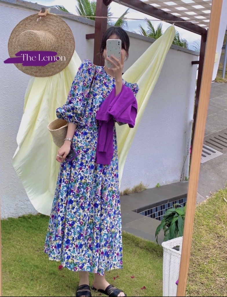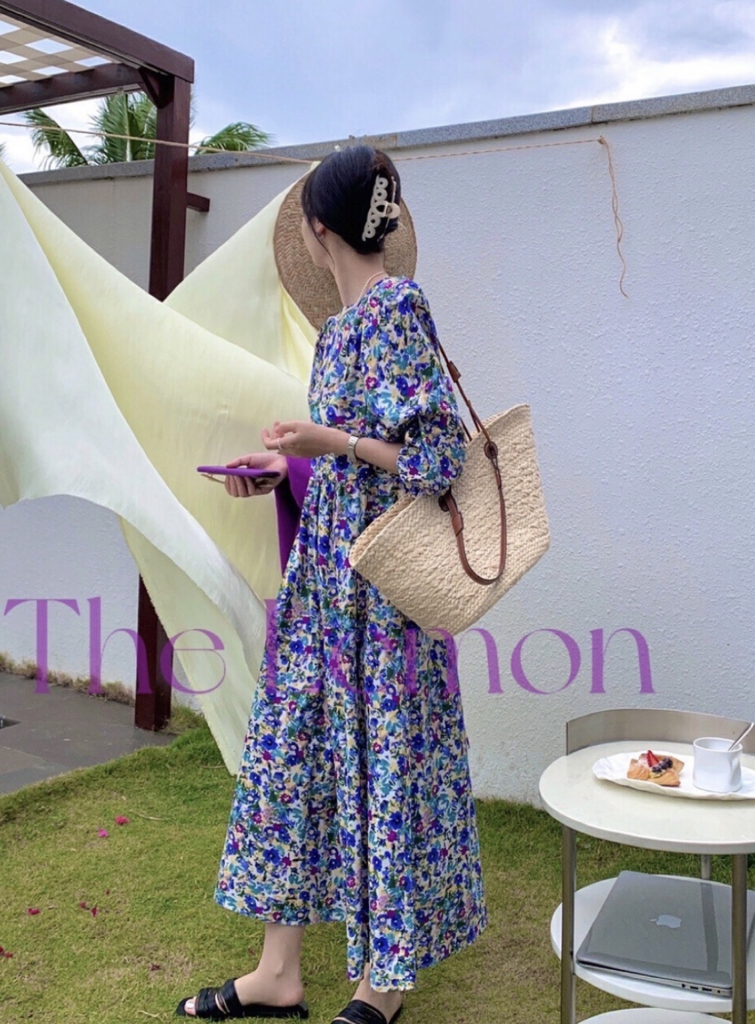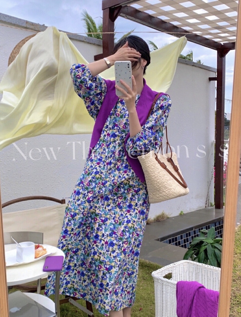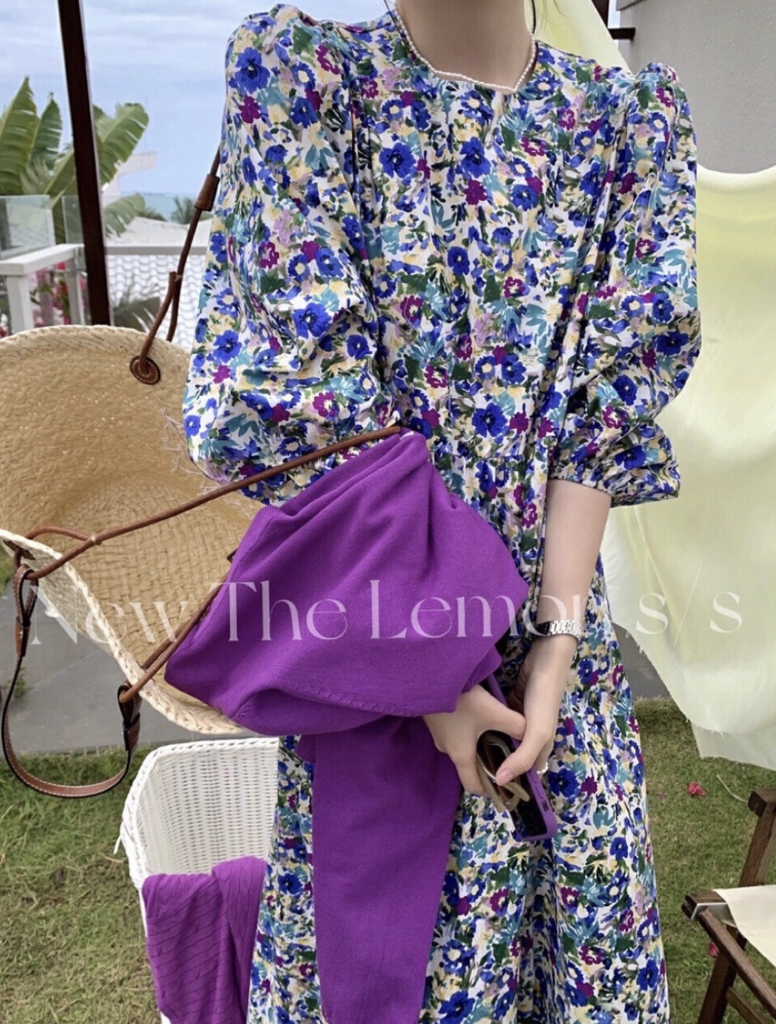 品名:2051 러브러브 플라워 롱 원피스 ◎※☞颜色:보라 ◎※☞尺寸:FREE ◎※☞材质:纯棉 100% 翻译