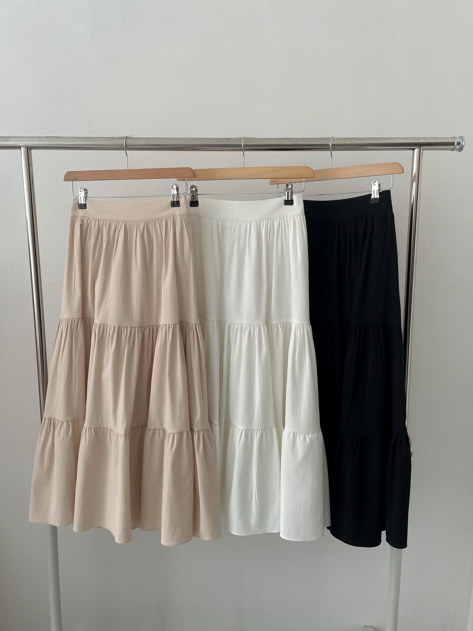 品名:[New] 삼단캉캉SK (봄 신상 무지 롱 주름 캉캉 스커트) ◎※☞颜色:베이지, 블랙, 아이보리 ◎※☞尺寸:FREE ◎※☞材质:스판 5%,聚酯 95% 翻译