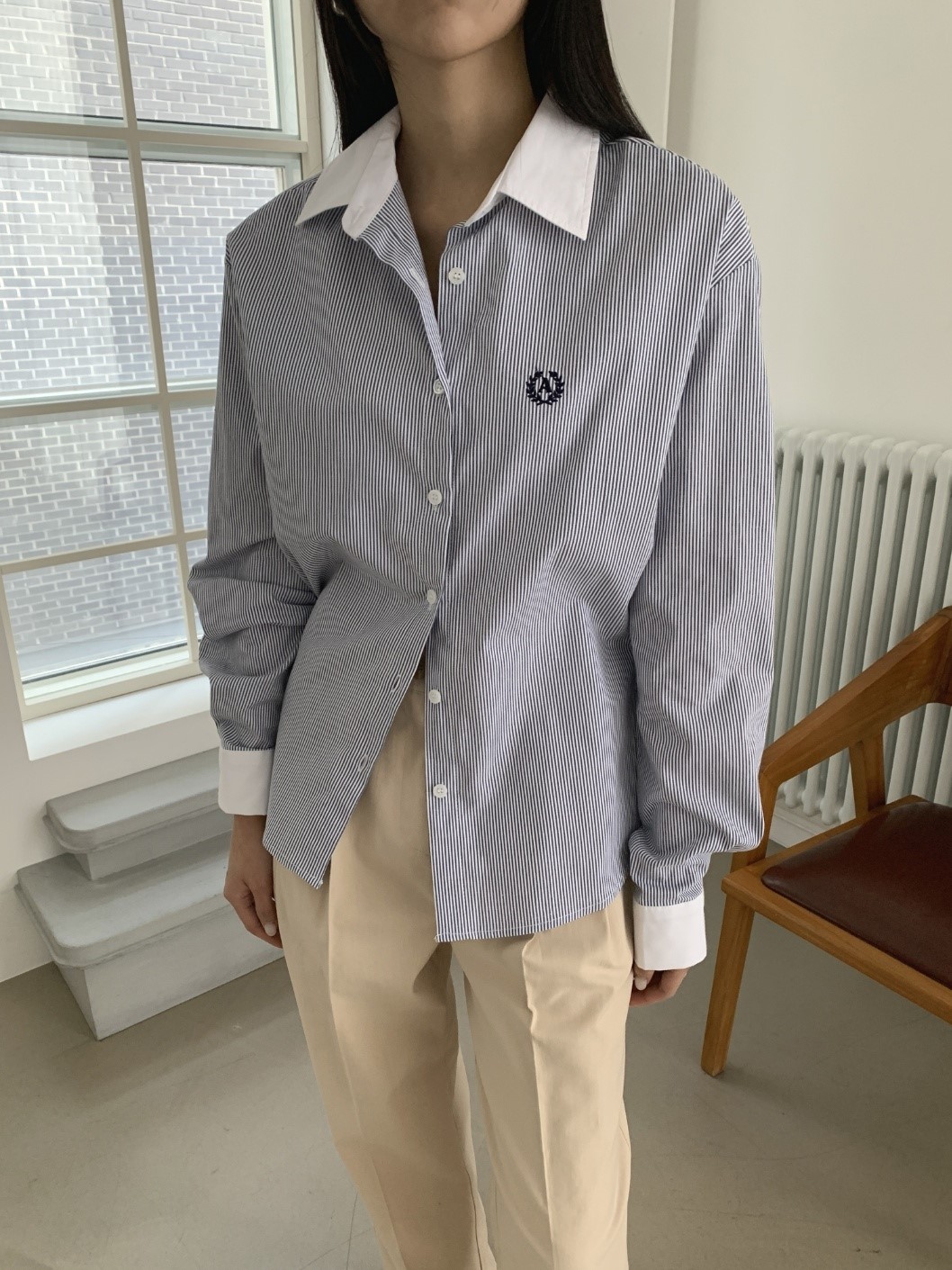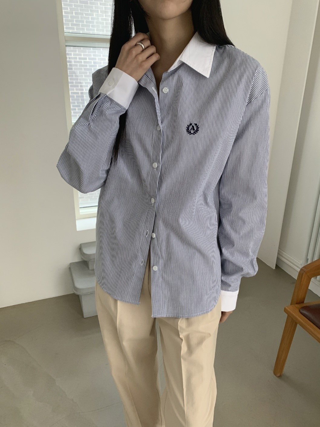 品名:A자수 남방 ◎※☞颜色:네이비, 베이지 ◎※☞尺寸:FREE ◎※☞材质:纯棉 100% 翻译