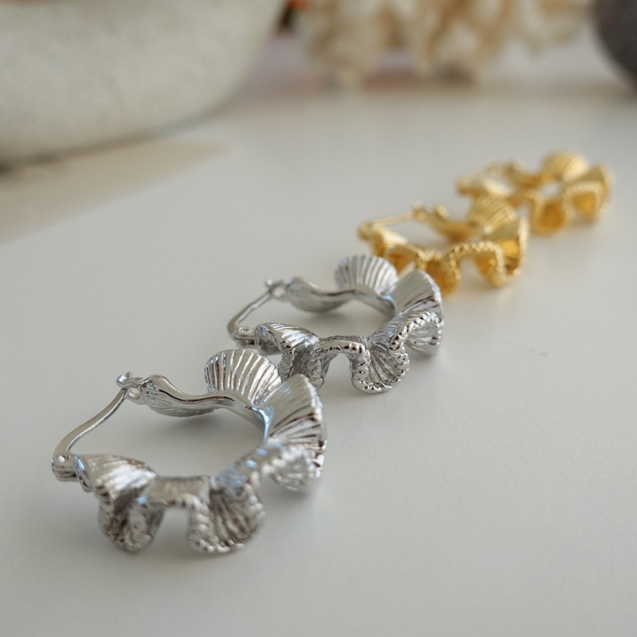 品名:E1964 레이스 귀걸이 ◎※☞颜色:골드, 실버 ◎※☞尺寸:FREE ◎※☞材质:镀金 0% 翻译