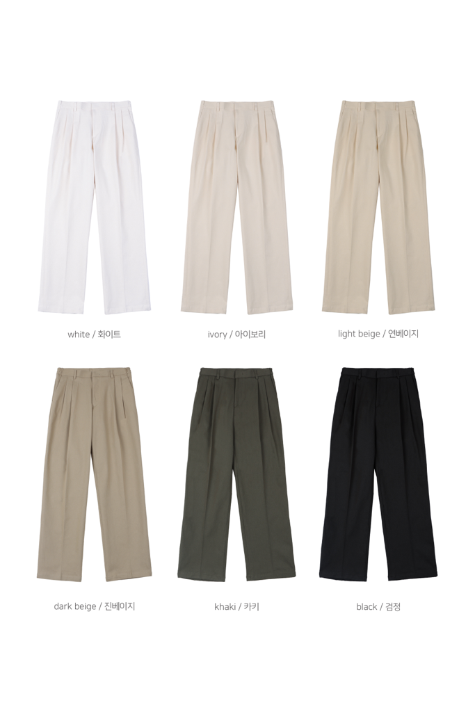 品名:코튼 세미와이드 사이드밴딩 팬츠. ◎※☞颜色:블랙, 아이보리, 연베이지, 진베이지, 카키, 화이트 ◎※☞尺寸:2XL, L, M, S, XL ◎※☞材质:스판 3%,纯棉 97% 翻译