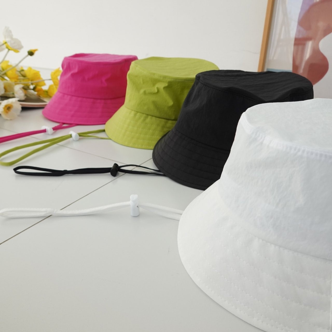 品名:신상 BH1103 비비드 스트링 버킷햇 ◎※☞颜色:라임, 블랙, 핑크, 화이트 ◎※☞尺寸:F ◎※☞材质:聚酯 100% 翻译