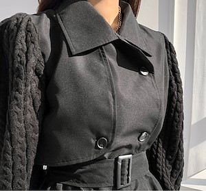 风衣拼接麻花针织袖夹克衫