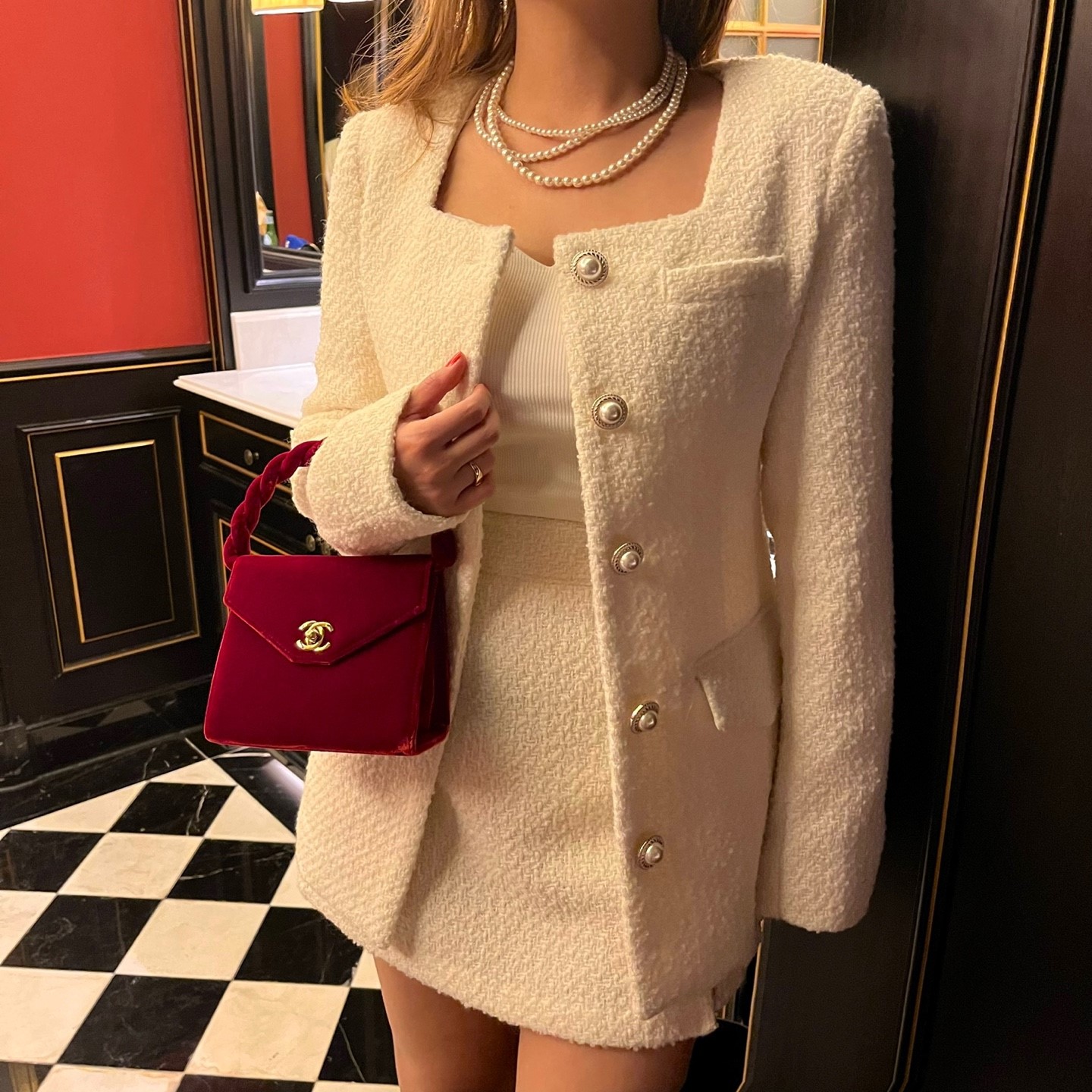 品名:코코스퀘어자켓 ◎※☞颜色:블랙, 아이보리 ◎※☞尺寸:FREE ◎※☞材质:聚酯 80%,羊毛 20% 翻译