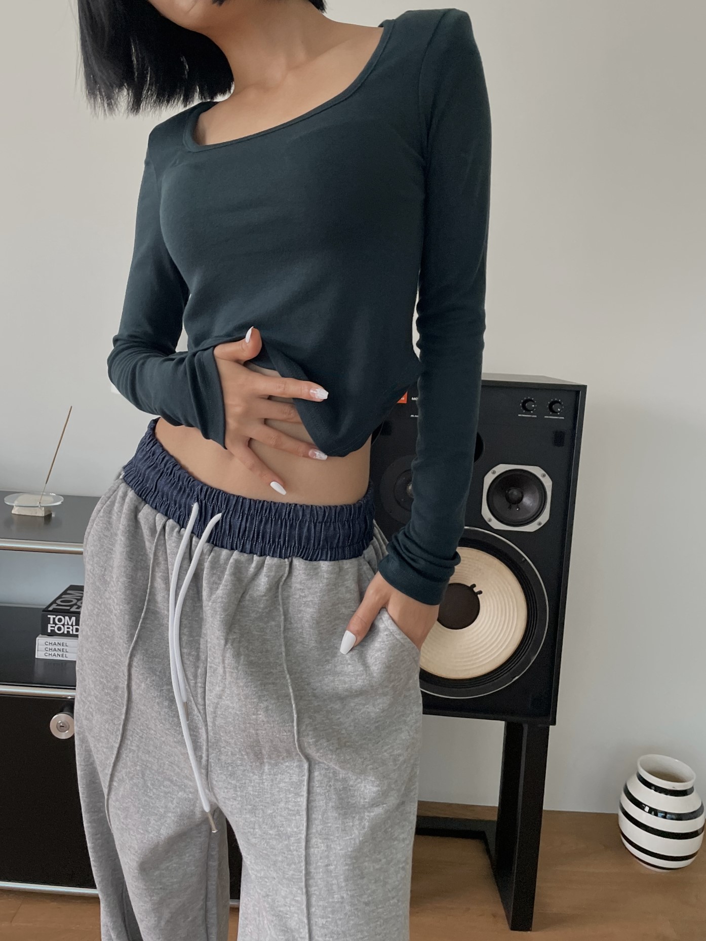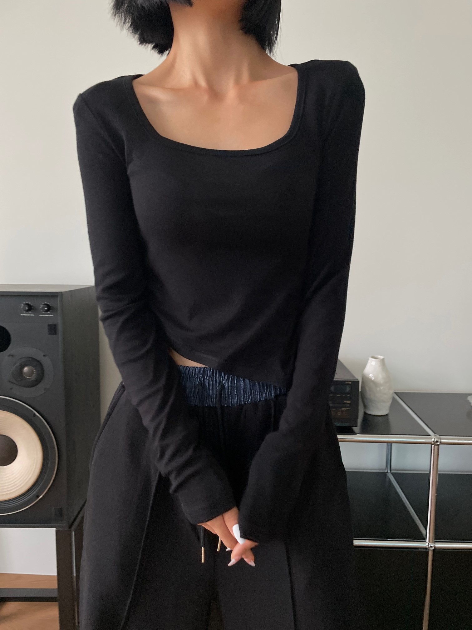 品名:네모사선티 ◎※☞颜色:블랙, 아이보리, 카키 ◎※☞尺寸:FREE ◎※☞材质:스판 4%,聚酯 62%,人造纤维 34% 翻译