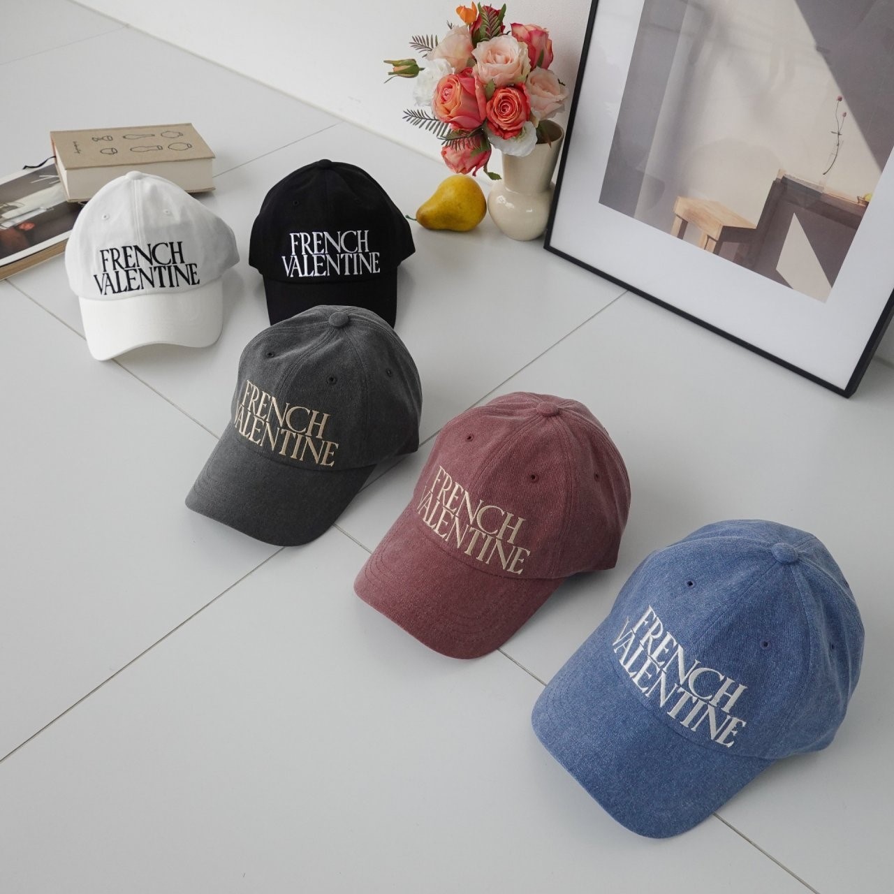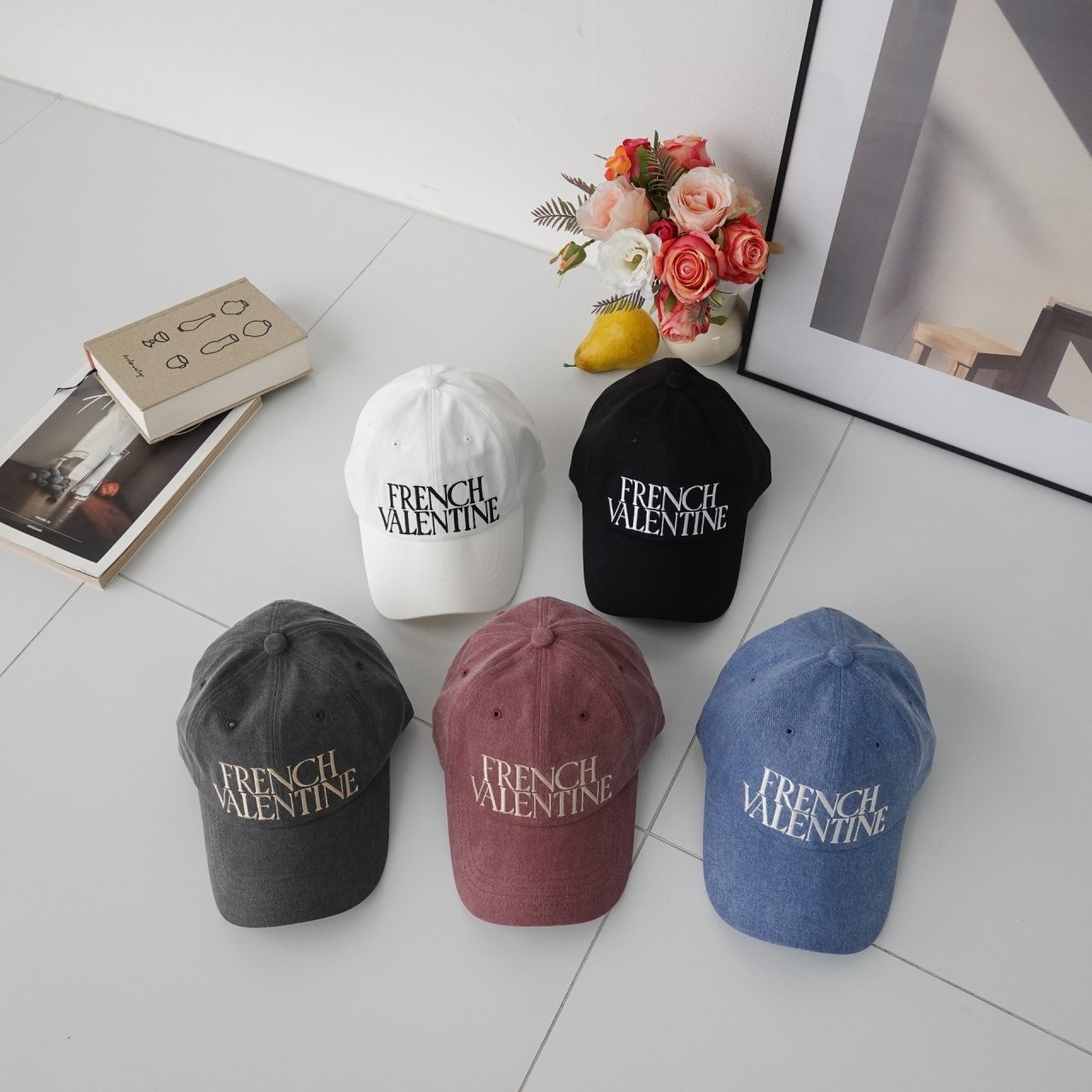 品名:신상 BC1149 프렌치 발렌타인 피그먼트 볼캡 ◎※☞颜色:레드, 블랙, 블루, 차콜, 화이트 ◎※☞尺寸:F ◎※☞材质:纯棉 100% 翻译