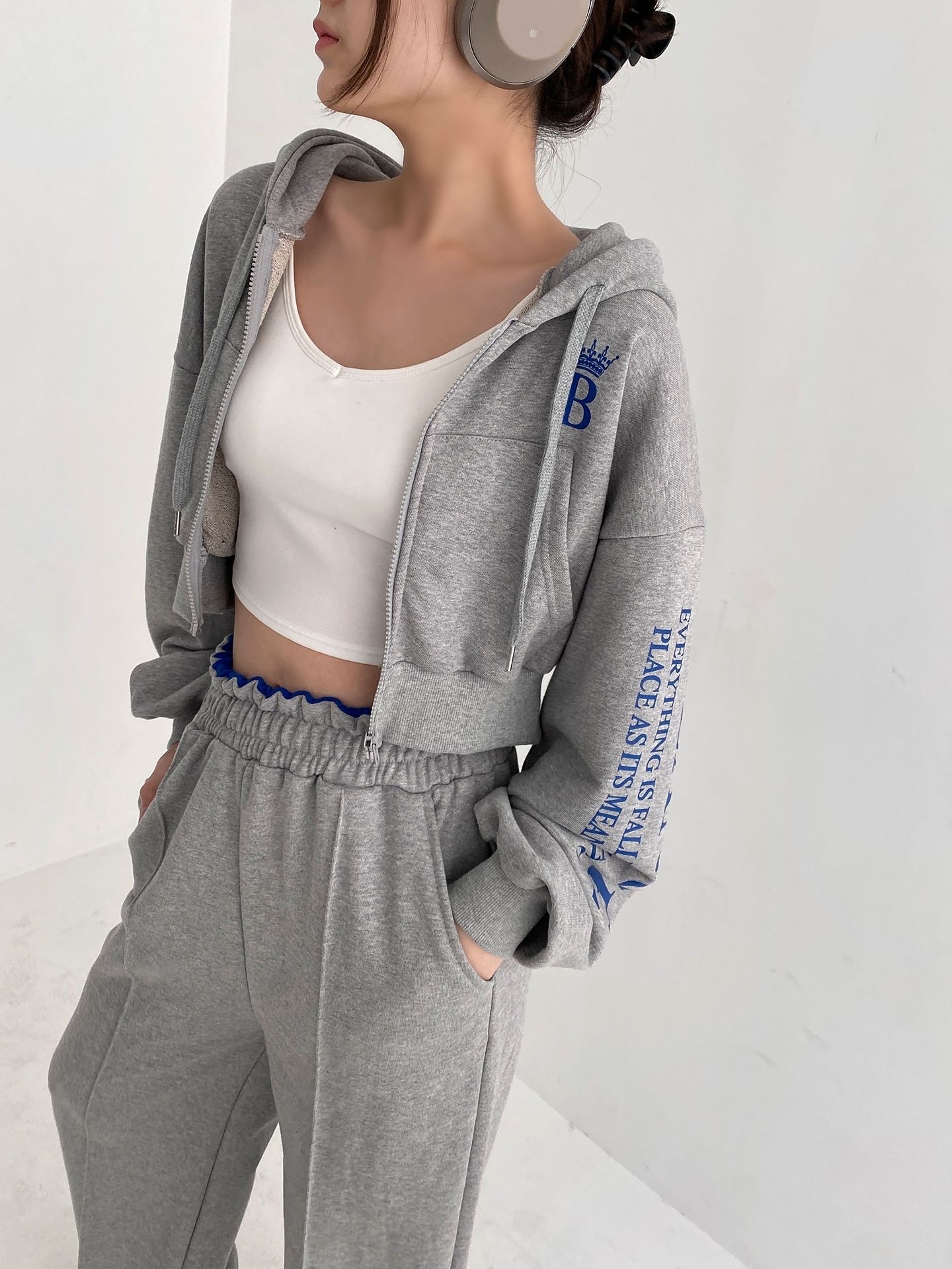 品名:비크라운 집업 세트 ◎※☞颜色:그레이, 블랙 ◎※☞尺寸:FREE ◎※☞材质:纯棉 100% ◎※☞注意事项:只能干洗,只能手洗,不能手洗,机洗,不能使用漂白剂,不能烘干,不能熨烫,不能曲折 翻译