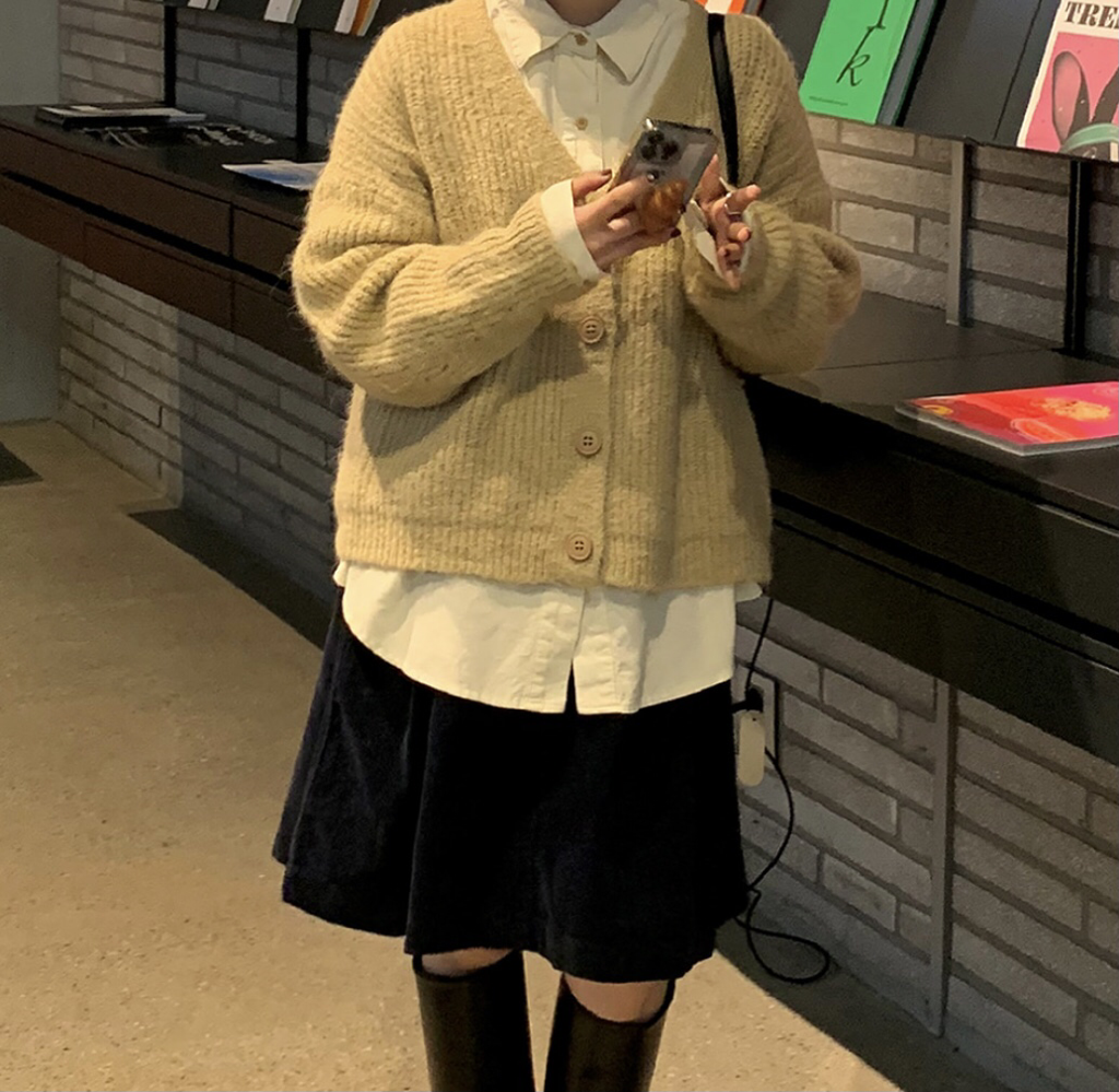 品名:코코 코듀로이 미디 SK ◎※☞颜色:네이비, 아이보리, 카키 ◎※☞尺寸:FREE ◎※☞材质:纯棉 100% 翻译