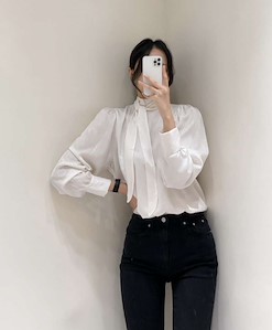 하이넥리본블라우스
