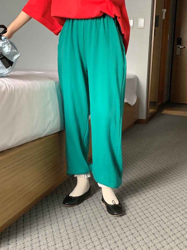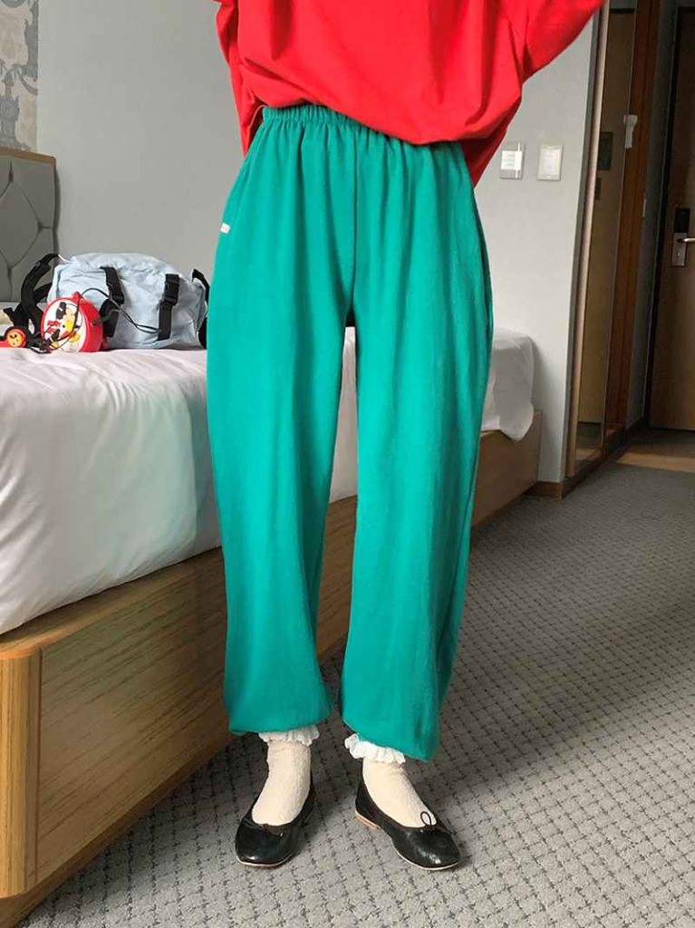品名:코지조거팬츠 ◎※☞颜色:그레이, 그린, 레드, 블랙 ◎※☞尺寸:FREE ◎※☞材质:纯棉 100% 翻译