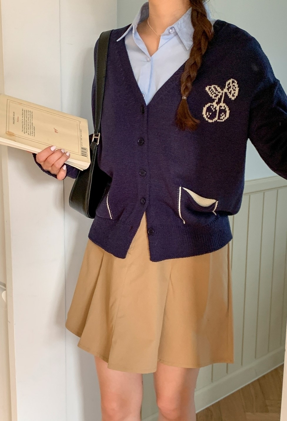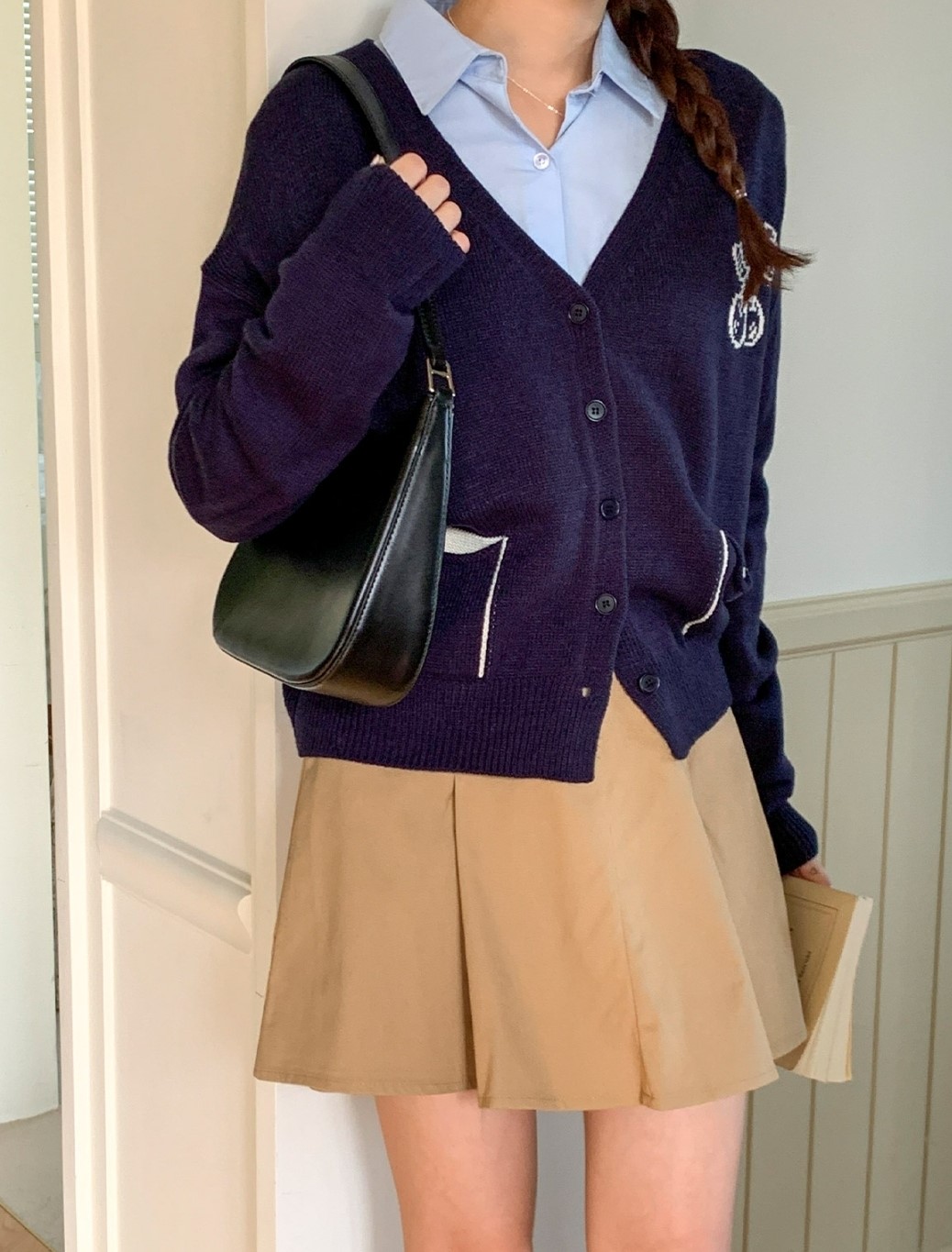 品名:앵두vy ◎※☞颜色:네이비, 아이보리 ◎※☞尺寸:FREE ◎※☞材质:腈纶 100% ◎※☞注意事项:只能干洗,只能手洗,不能手洗,机洗,不能使用漂白剂,不能烘干,不能熨烫,不能曲折 翻译