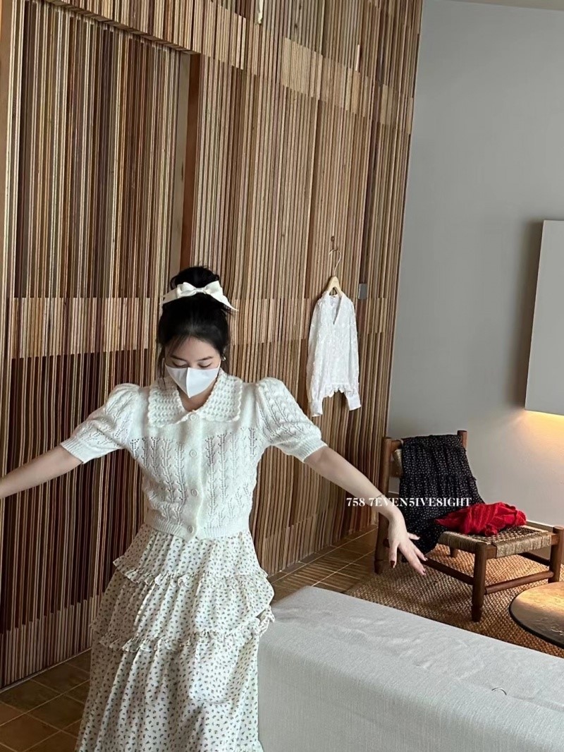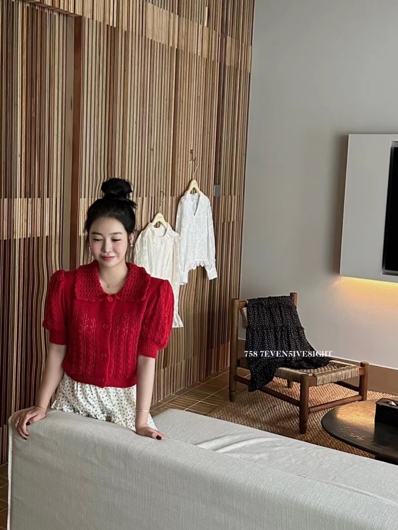 品名:카라 펀칭 반팔니트 가디건 cd ◎※☞颜色:레드, 아이보리 ◎※☞尺寸:FREE ◎※☞材质:腈纶 100% 翻译