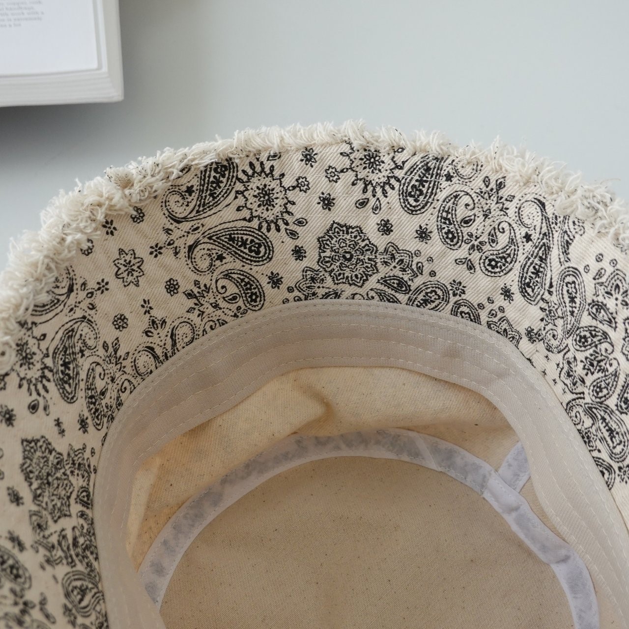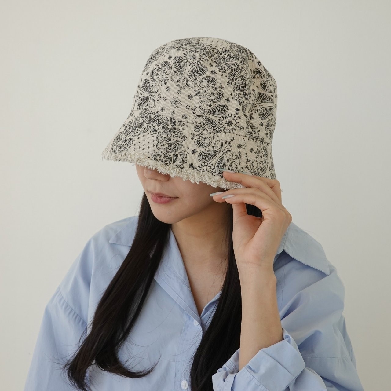 品名:신상 BH1209 페이즐리 데미지 버킷햇 ◎※☞颜色:베이지, 블랙, 화이트 ◎※☞尺寸:F ◎※☞材质:纯棉 100% 翻译