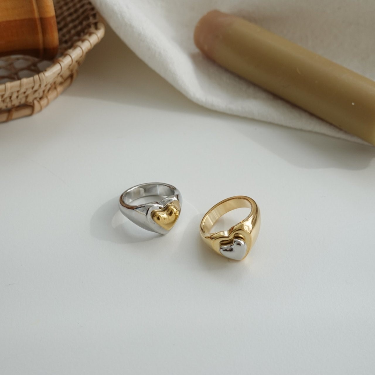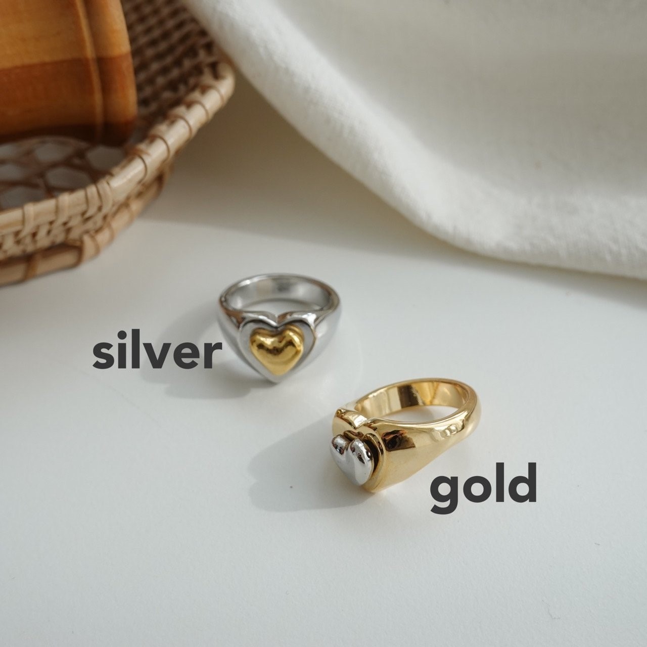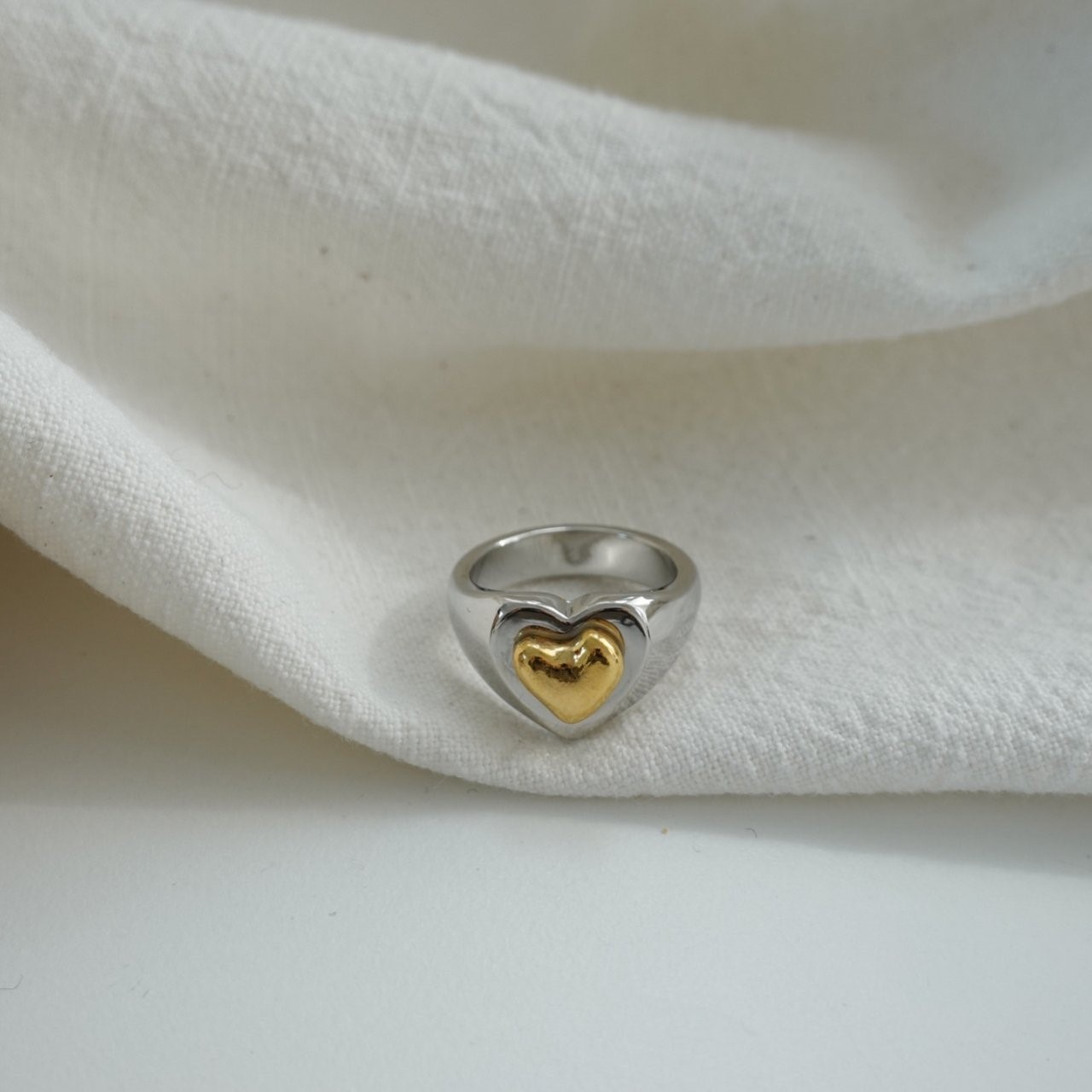 品名:R3001 하트 콤비 반지 ◎※☞颜色:골드, 실버 ◎※☞尺寸:FREE ◎※☞材质:镀金 0% 翻译