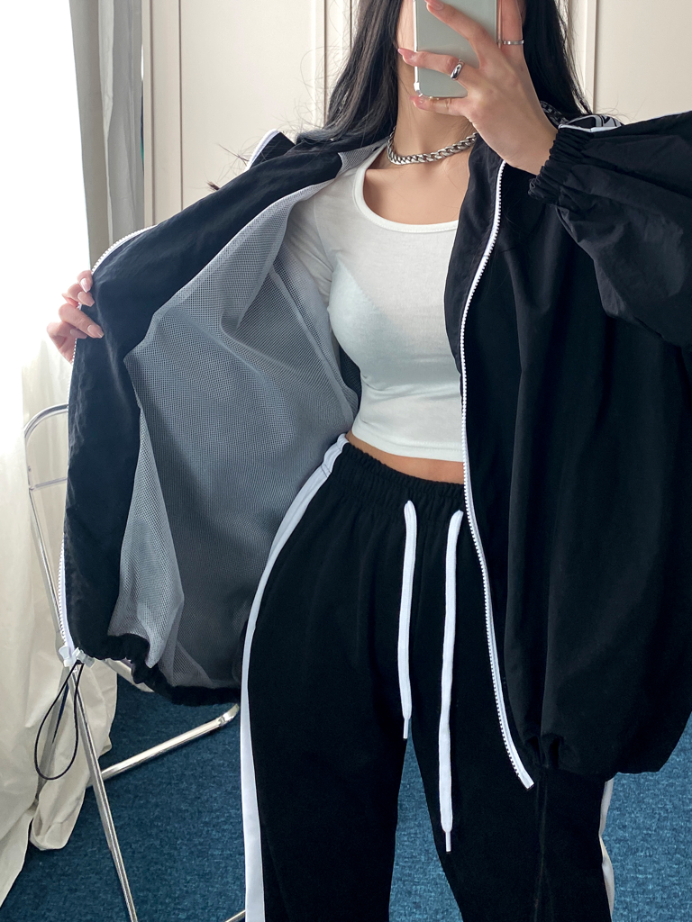 品名:CF222) 바람막이 캠핑룩 오버핏 남녀공용 트레이닝 집업 JP 에슬레져 ◎※☞颜色:블랙, 화이트 ◎※☞尺寸:FREE ◎※☞材质:폴리 100% ◎※☞注意事项:只能干洗,只能手洗,不能手洗,机洗,不能使用漂白剂,不能烘干,不能熨烫,不能曲折