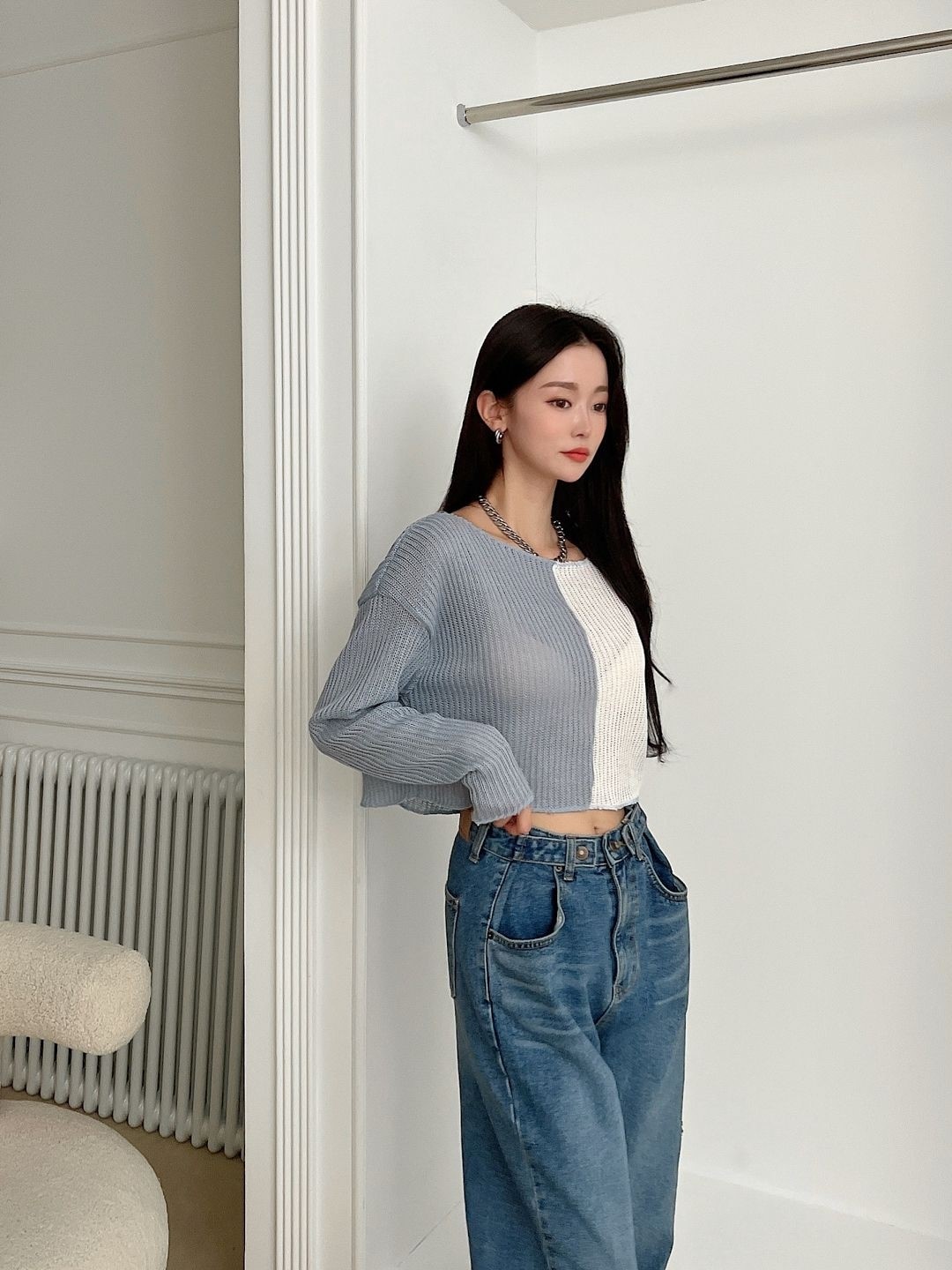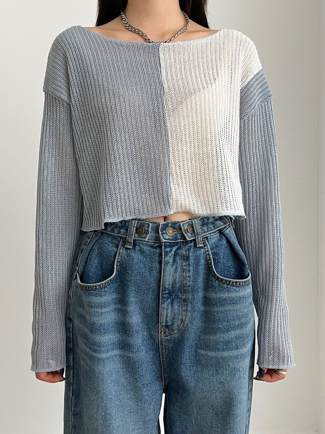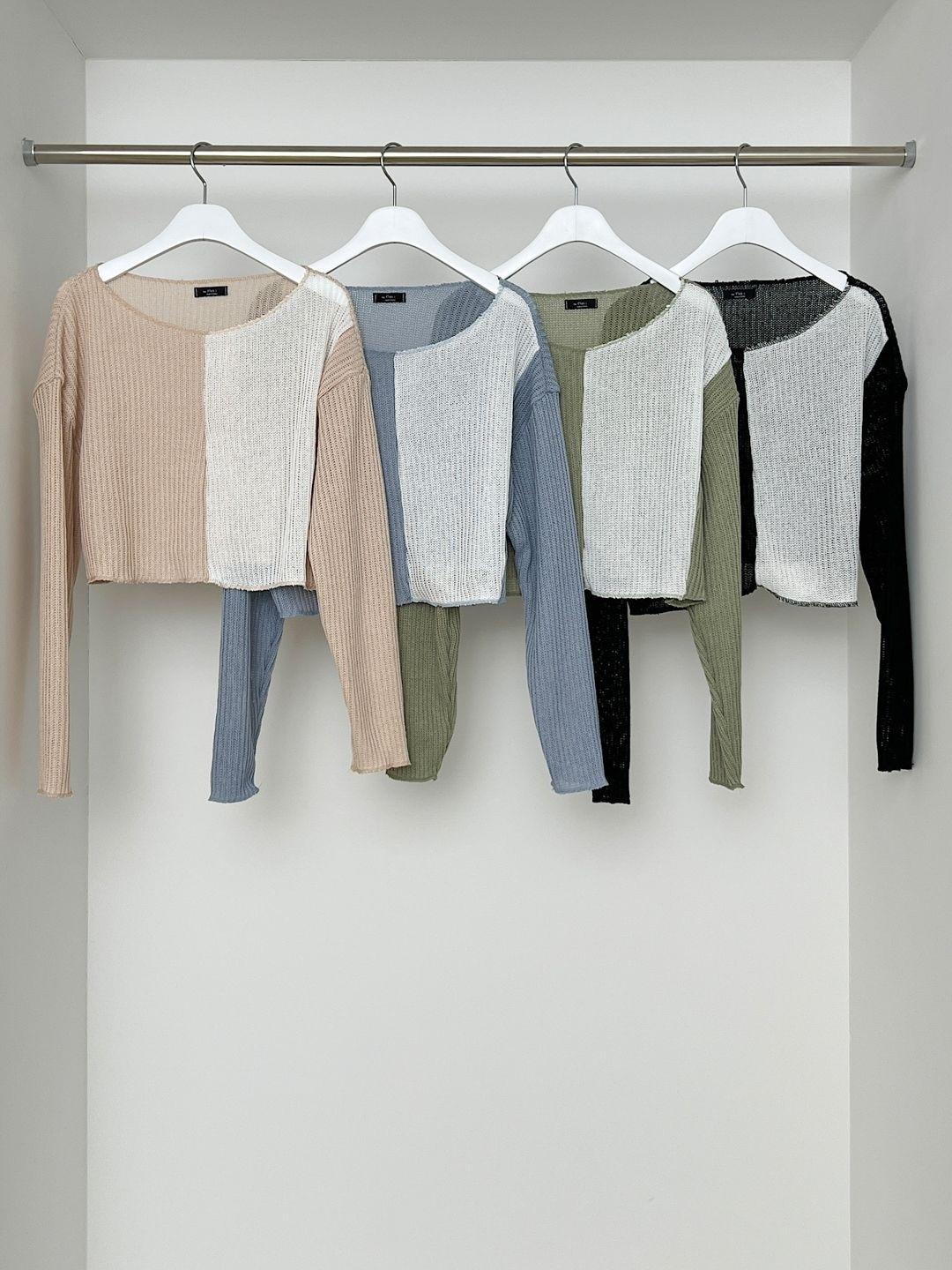 品名:배색 크롭니트 ◎※☞颜色:민트, 베이지, 블랙, 소라 ◎※☞尺寸:FREE ◎※☞材质:聚酯 100% 翻译