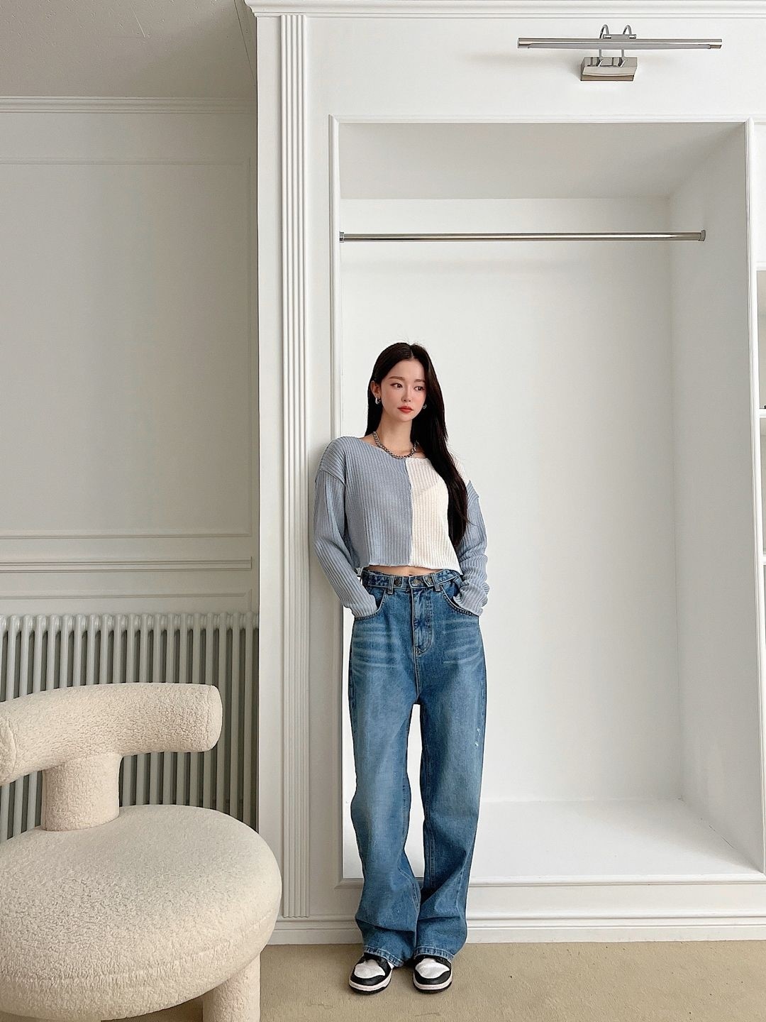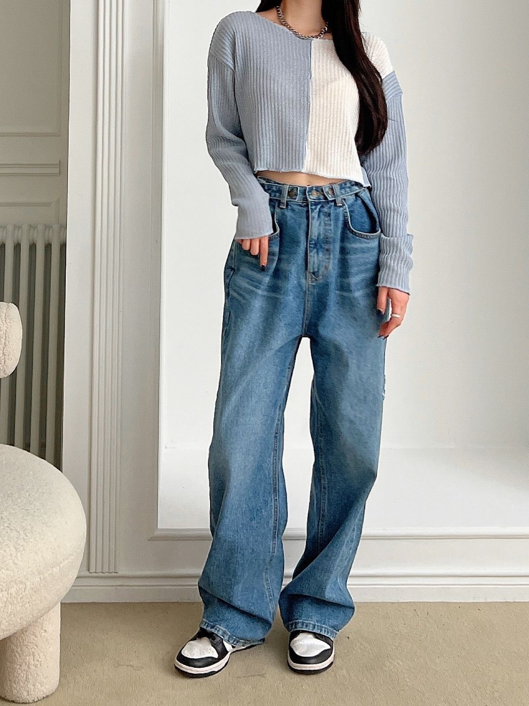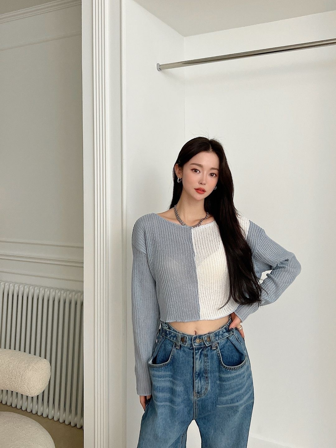 品名:배색 크롭니트 ◎※☞颜色:민트, 베이지, 블랙, 소라 ◎※☞尺寸:FREE ◎※☞材质:聚酯 100% 翻译