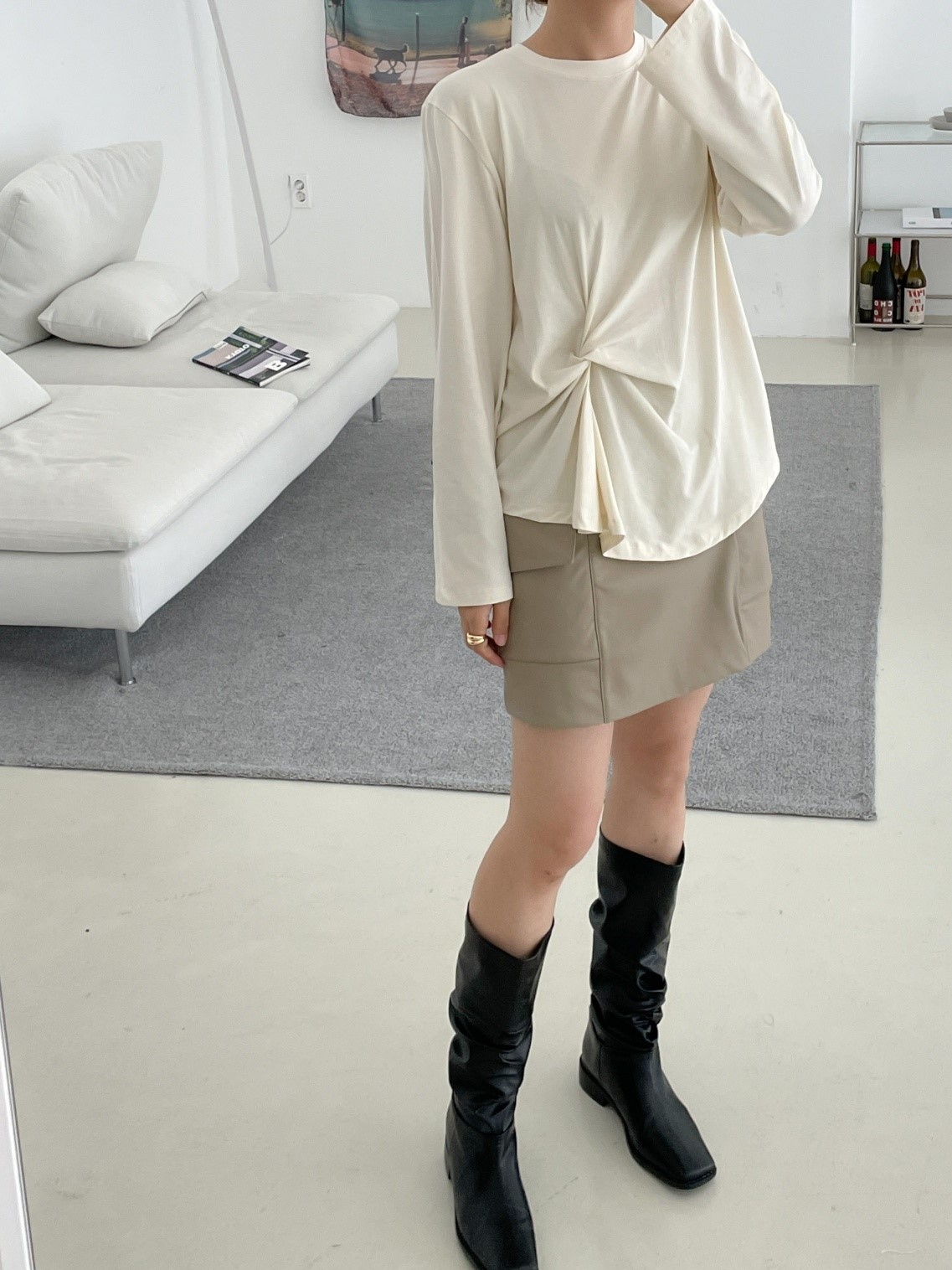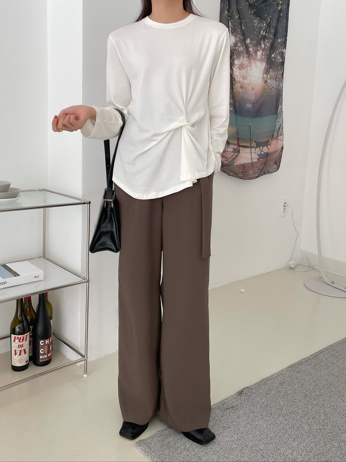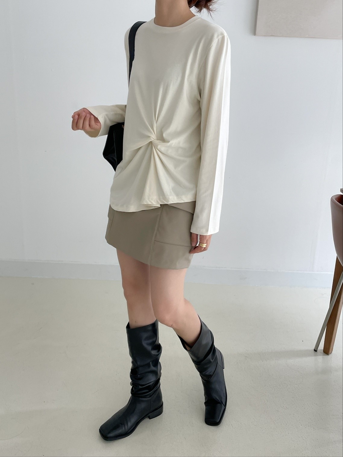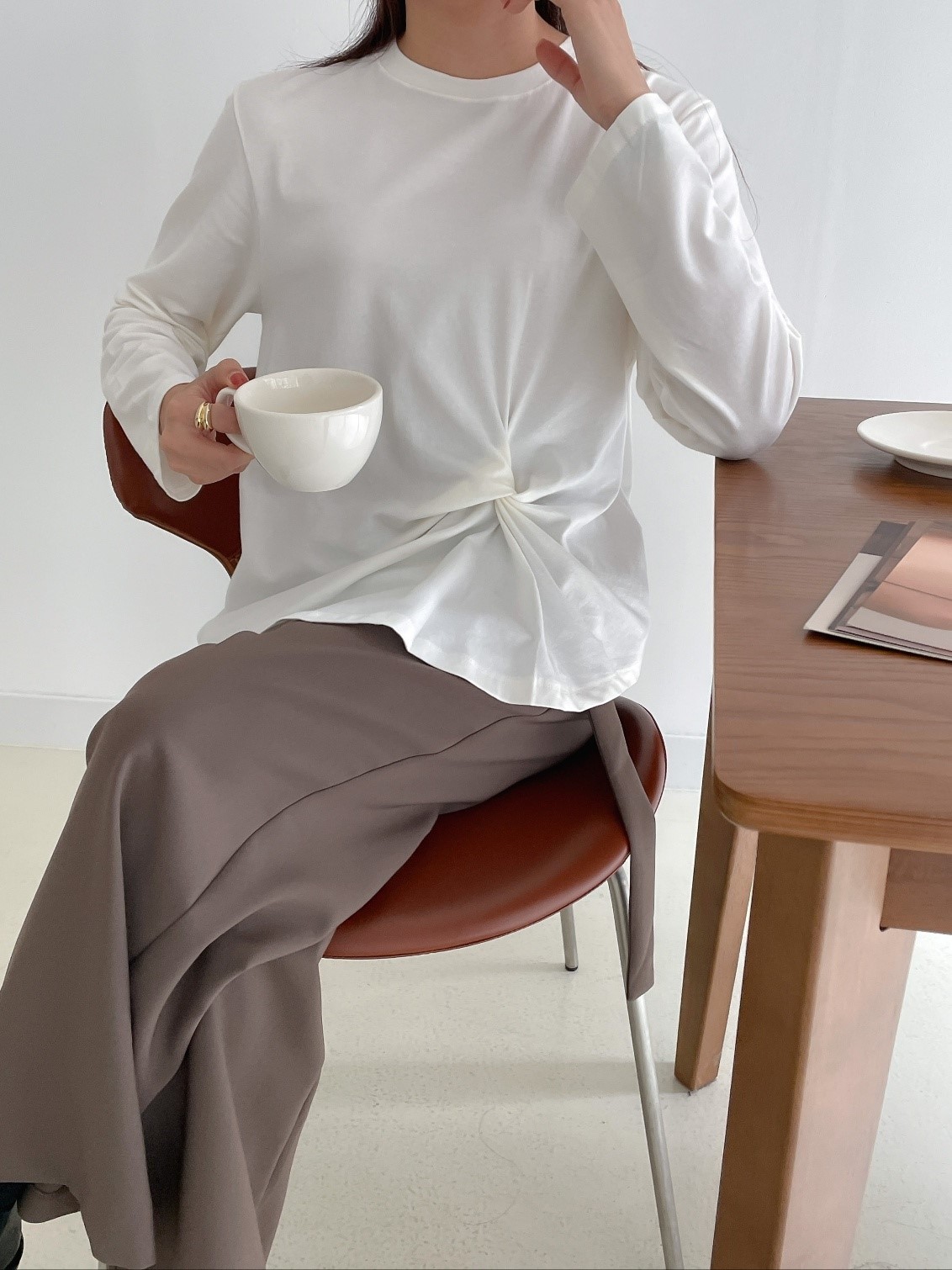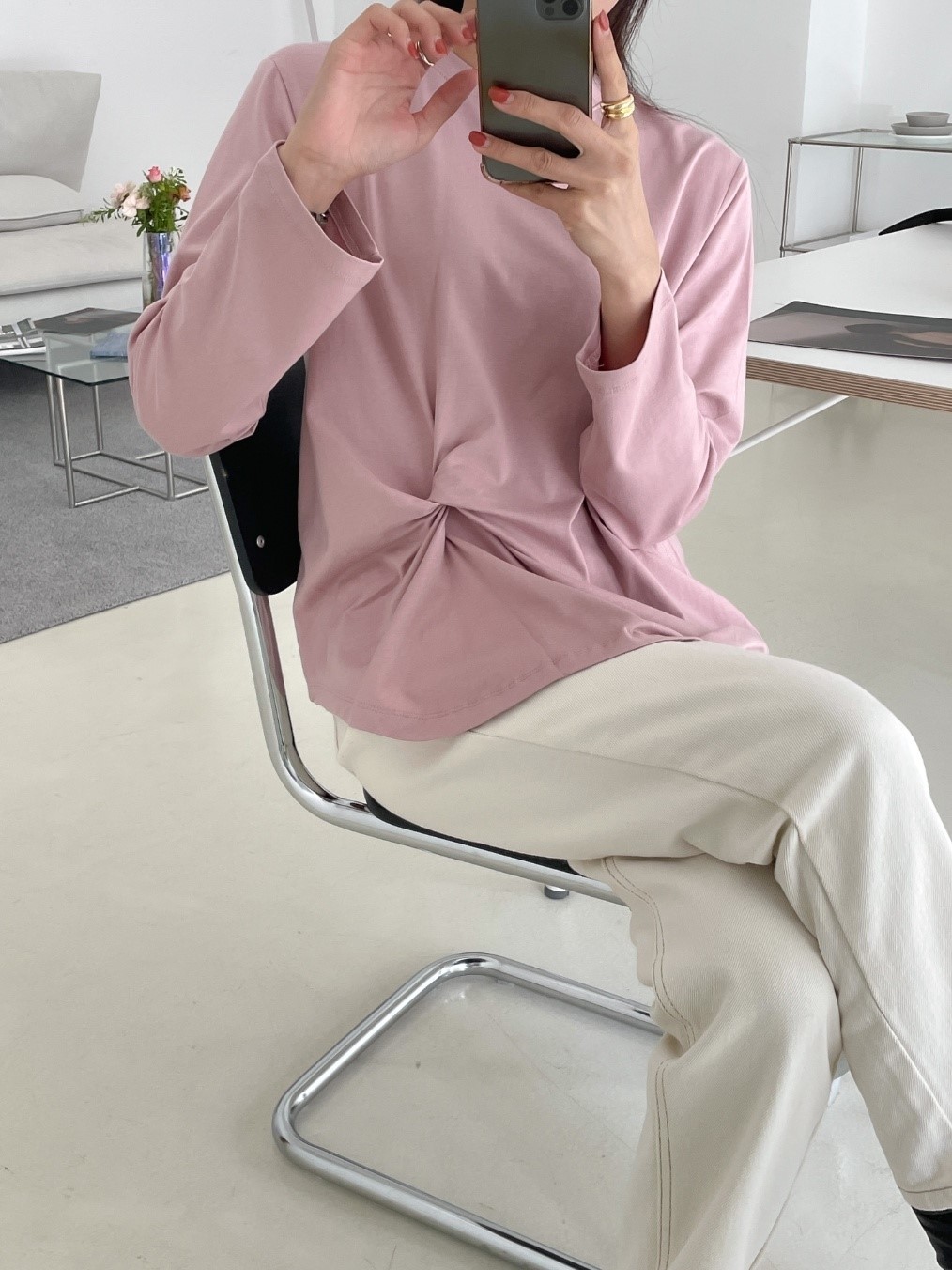 品名:허니꼬임T ◎※☞颜色:밤색, 블랙, 아이보리, 크림, 핑크 ◎※☞尺寸:FREE ◎※☞材质:스판 4%,纯棉 58%,모달 38% 翻译
