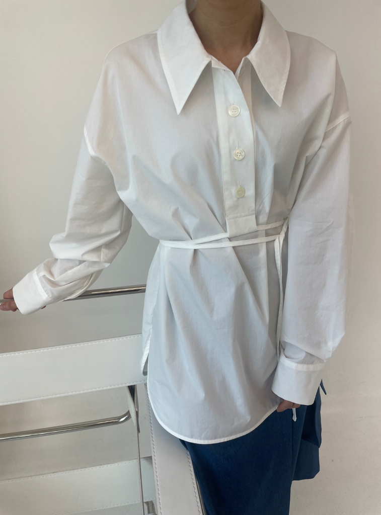 品名:스트랩 포인트 셔츠 ◎※☞颜色:다크그레이, 화이트 ◎※☞尺寸:FREE ◎※☞材质:纯棉 66%,尼龙 34% 翻译