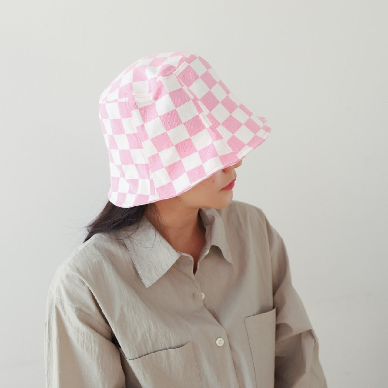 品名:BH1099 체커보드 나팔 버킷햇 ◎※☞颜色:블랙, 블루, 핑크 ◎※☞尺寸:F ◎※☞材质:纯棉 100% 翻译