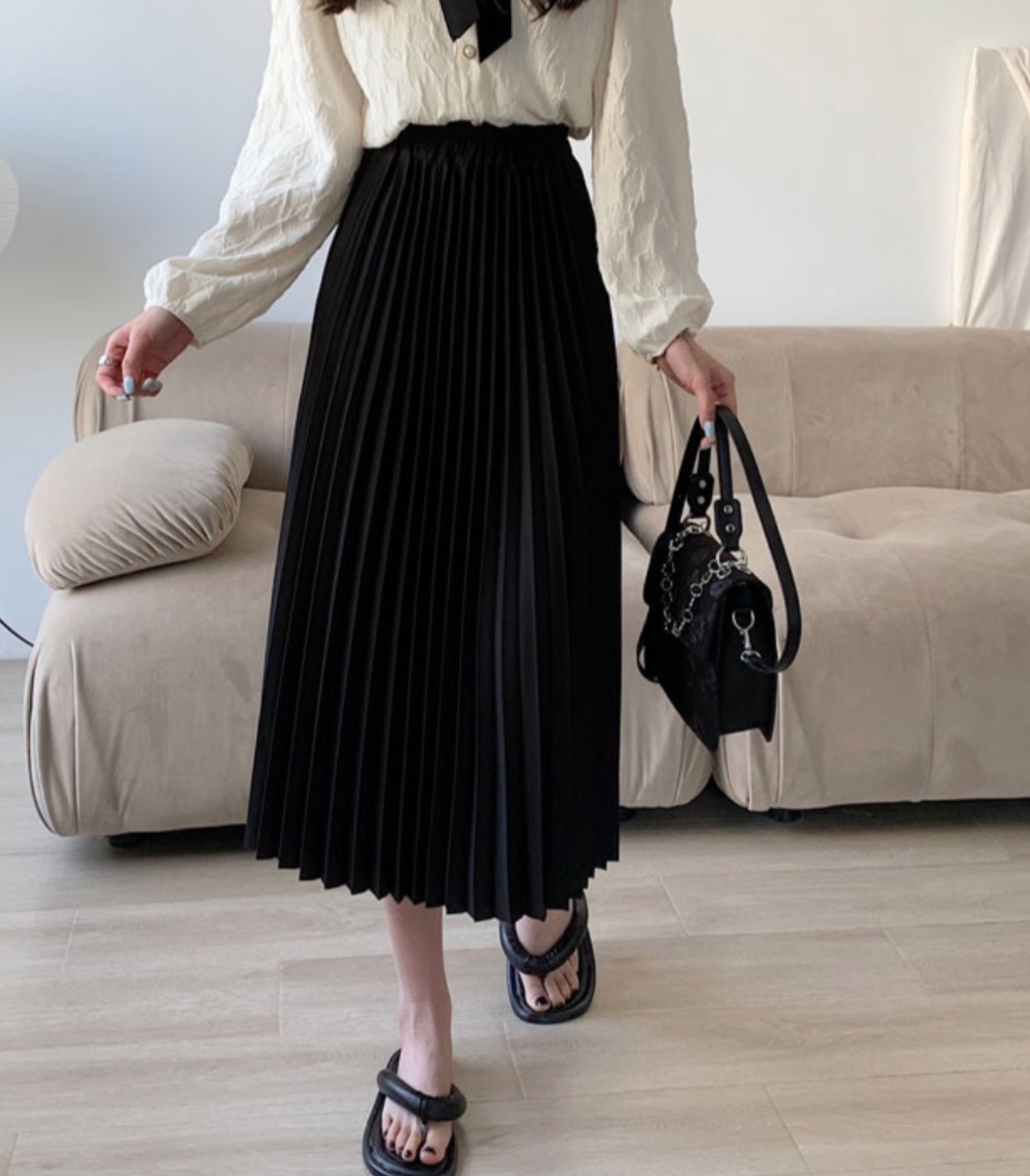 品名:주름밴드스커트 #여성하의밴드치마봄간절기로맨틱시크캐주얼 ◎※☞颜色:베이지, 블랙, 블루 ◎※☞尺寸:FREE ◎※☞材质:聚酯 100% 翻译