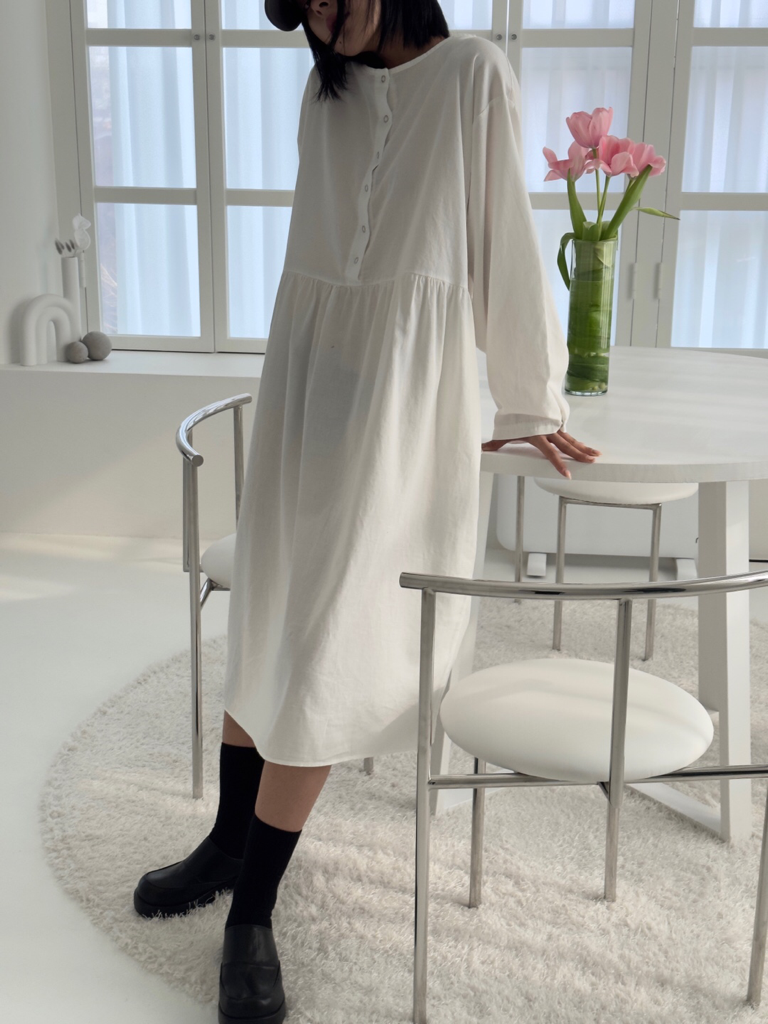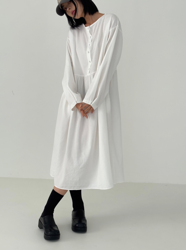 品名:스냅 반오픈 롱 OPS ◎※☞颜色:블랙, 아이보리 ◎※☞尺寸:FREE ◎※☞材质:纯棉 100% 翻译