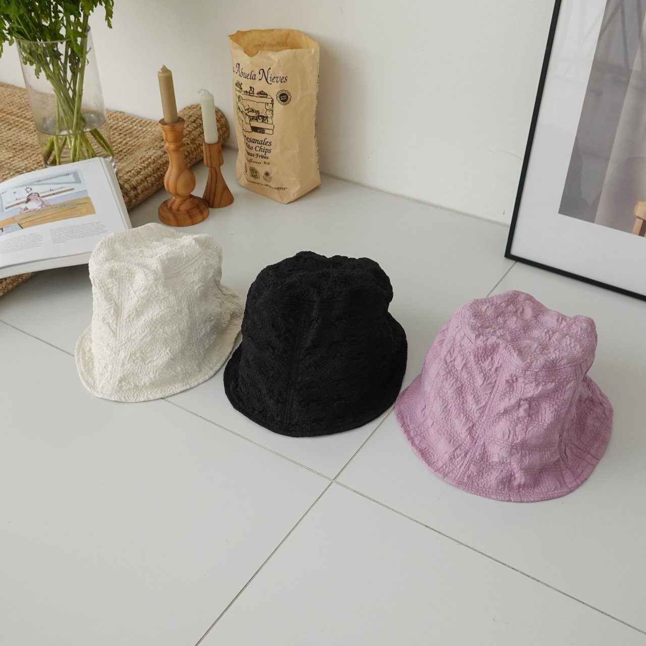 品名:신상 BH1108 플리츠 샤인 밴딩 버킷햇 ◎※☞颜色:블랙, 퍼플, 화이트 ◎※☞尺寸:F ◎※☞材质:聚酯 100% 翻译