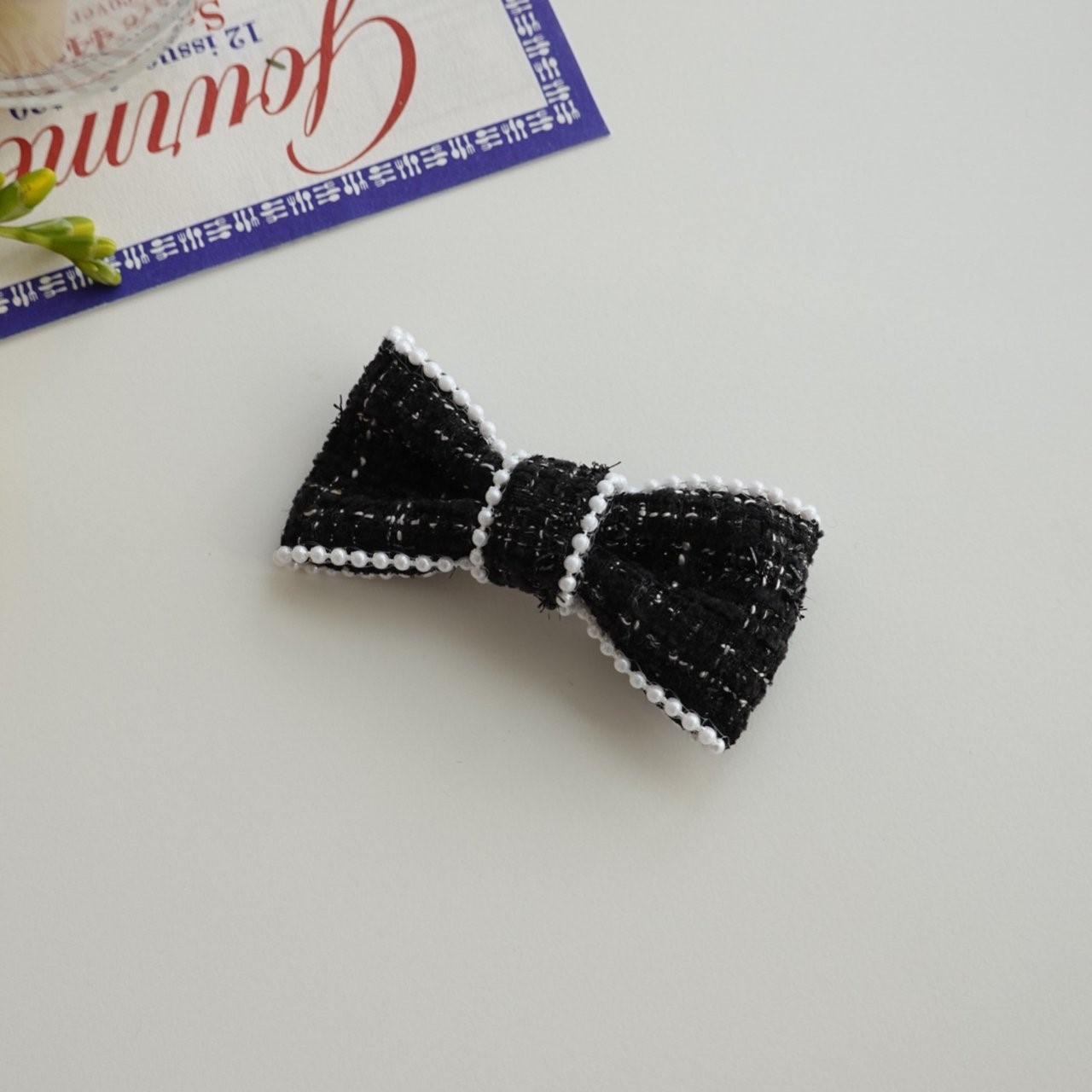品名:H3007 트위드 리본 헤어핀 ◎※☞颜色:블랙, 블루, 퍼플, 화이트 ◎※☞尺寸:F ◎※☞材质:스틸 0% 翻译