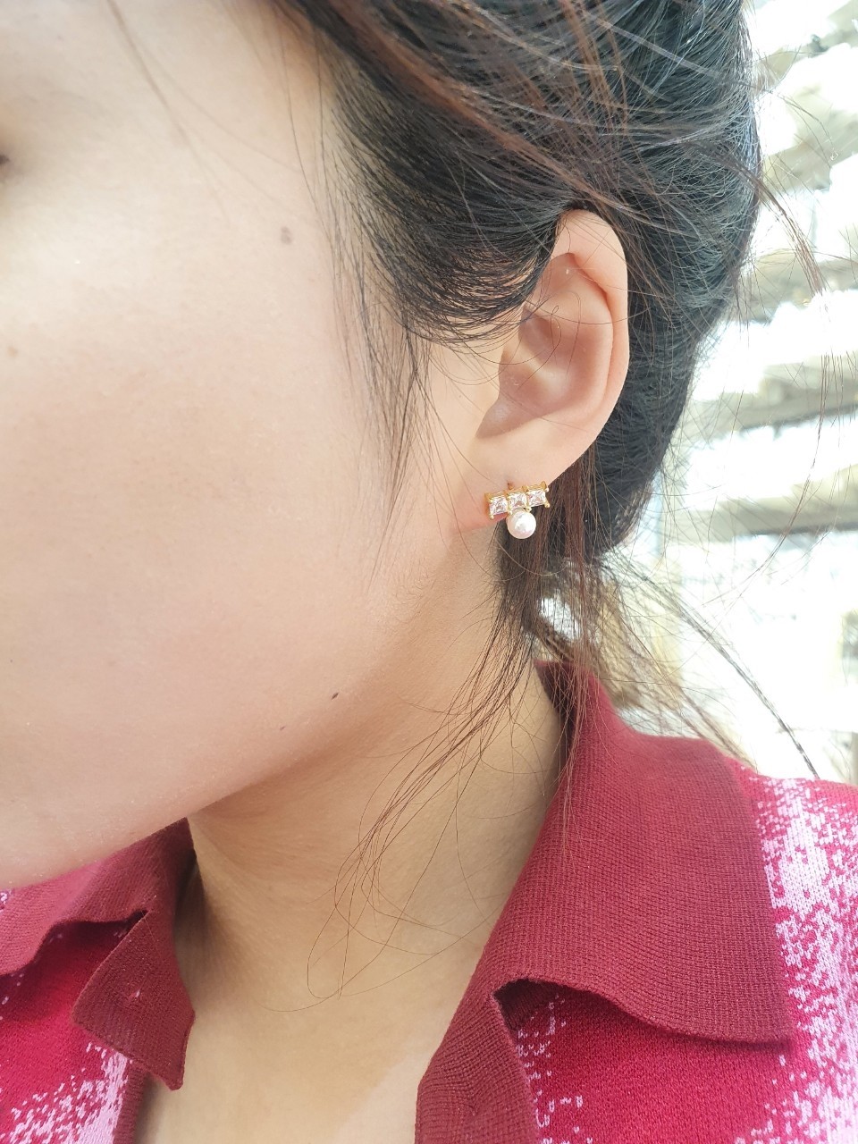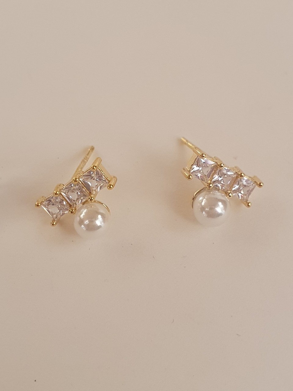 品名:은제품---3개큐빅 한개진주귀걸이