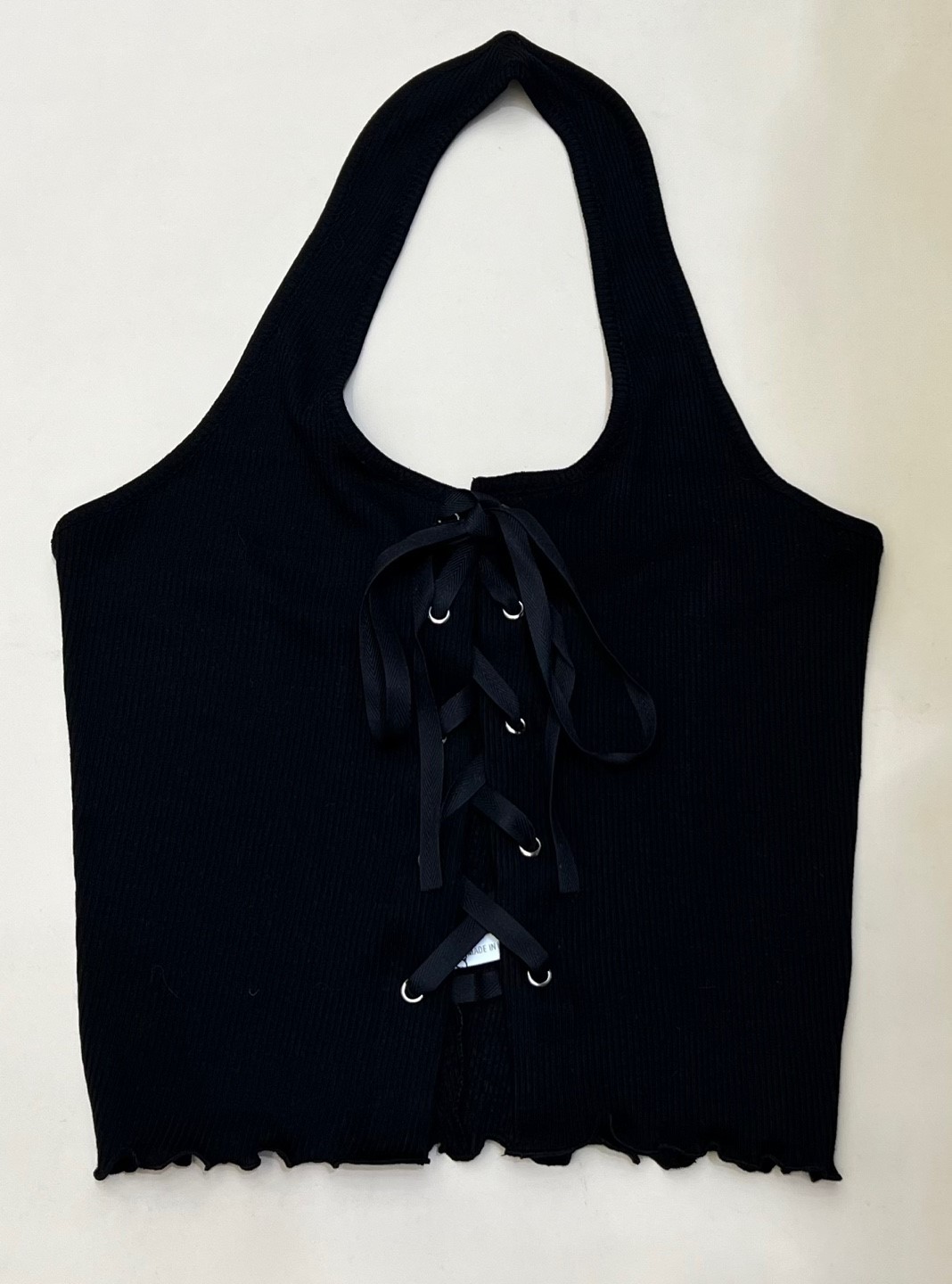 品名:아일렛리본나시 ◎※☞颜色:베이지, 블랙, 아이보리 ◎※☞尺寸:FREE ◎※☞材质:스판 5%,人造纤维 95% 翻译