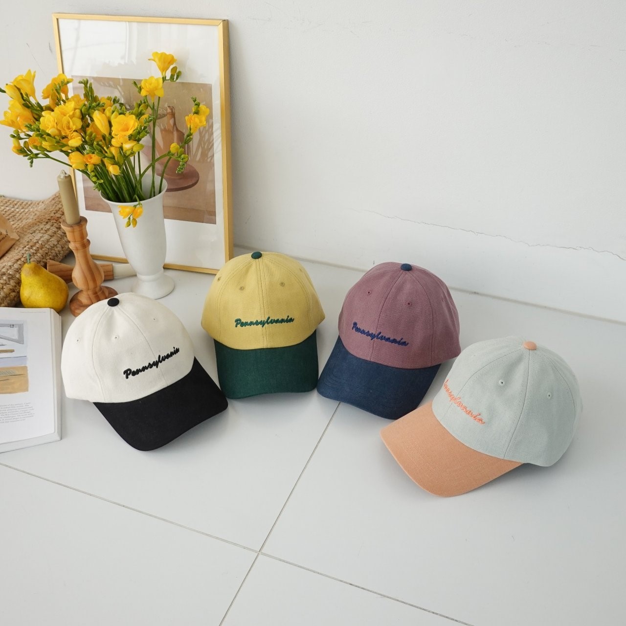 品名:신상 BC1209 펜실베니아 배색 볼캡 ◎※☞颜色:라임, 민트, 아이보리, 퍼플 ◎※☞尺寸:F ◎※☞材质:纯棉 100% 翻译