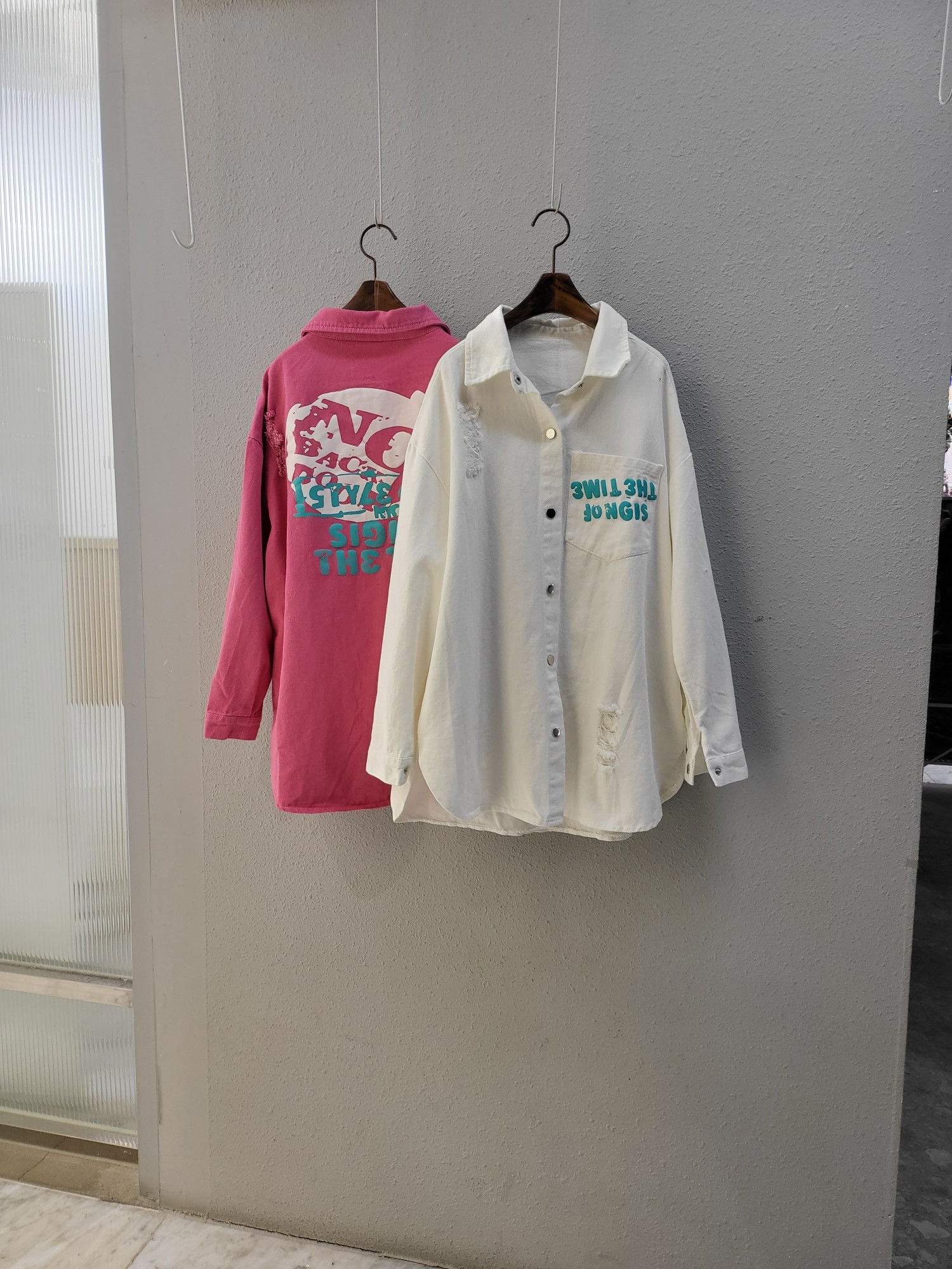 品名:스템프 프린트 캐쥬얼 남방 ◎※☞颜色:아이보리, 핑크 ◎※☞尺寸:FREE ◎※☞材质:纯棉 100% 翻译