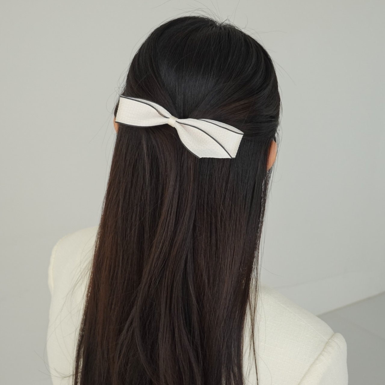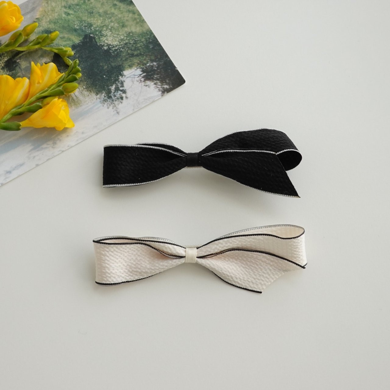 品名:H3018 새틴 리본 헤어핀 ◎※☞颜色:블랙, 아이보리 ◎※☞尺寸:F ◎※☞材质:스틸 0% 翻译