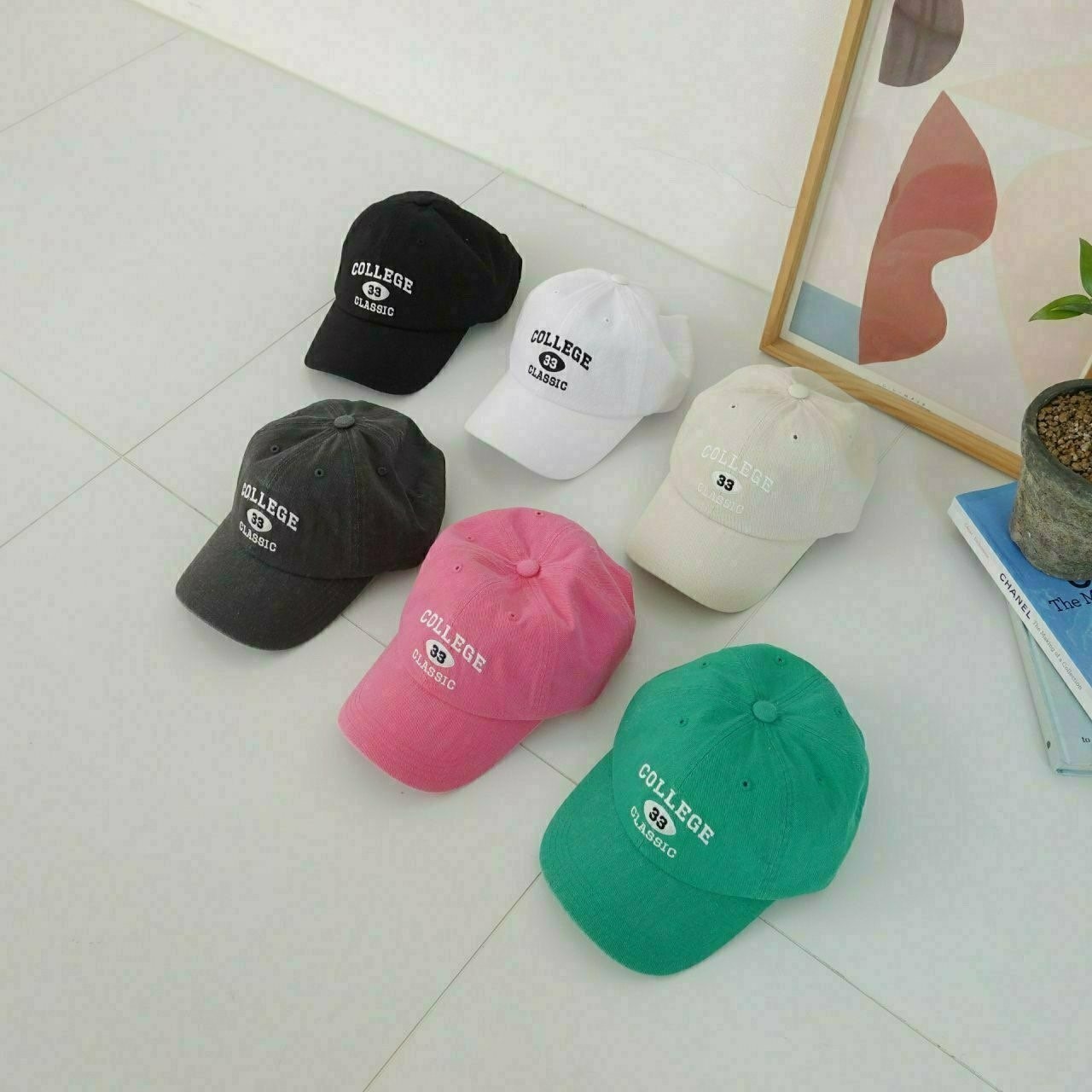 品名:BC641 컬리지 33 볼캡 ◎※☞颜色:그린, 베이지, 블랙, 차콜, 핑크, 화이트 ◎※☞尺寸:F ◎※☞材质:纯棉 100% 翻译