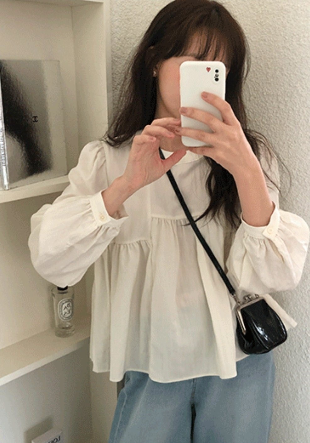 品名:큐브 블라우스 ◎※☞颜色:베이지, 블랙, 아이보리 ◎※☞尺寸:FREE ◎※☞材质:尼龙 32%,人造纤维 68% 翻译