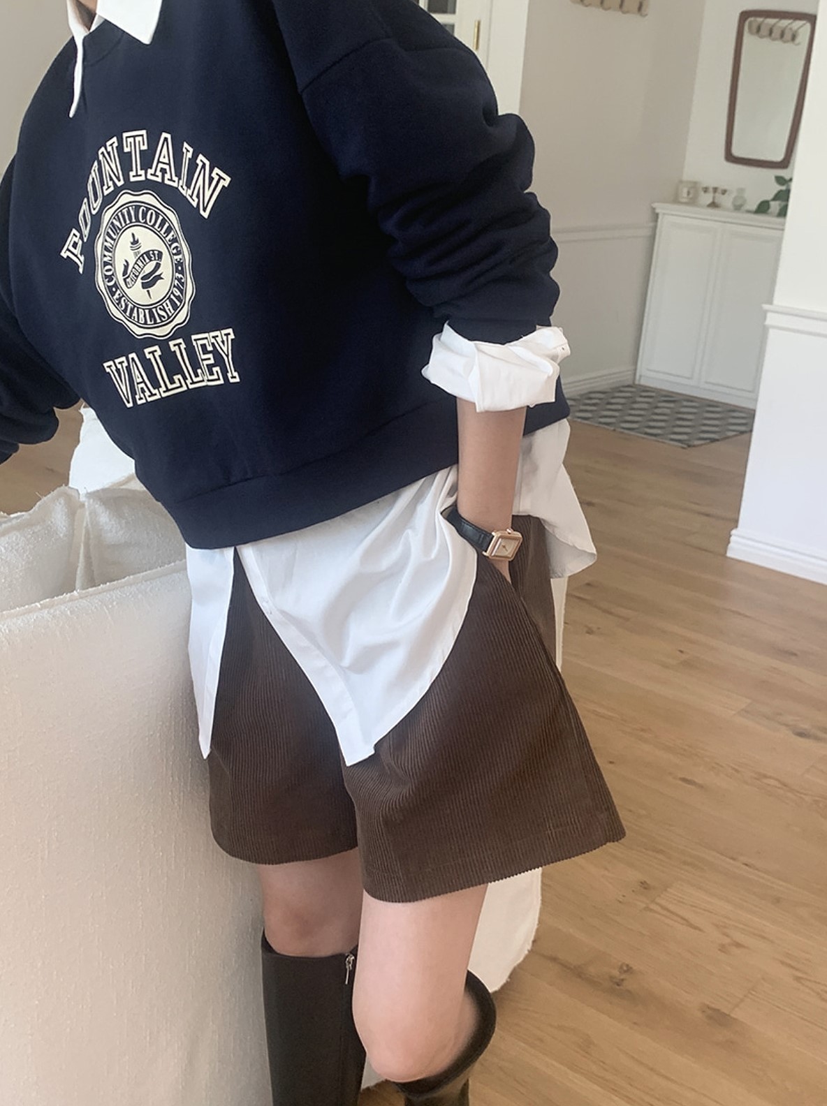 品名:컬리지 크롭 MTM ◎※☞颜色:그레이, 네이비, 아이, 카키 ◎※☞尺寸:FREE ◎※☞材质:纯棉 100% ◎※☞注意事项:只能干洗,只能手洗,不能手洗,机洗,不能使用漂白剂,不能烘干,不能熨烫,不能曲折