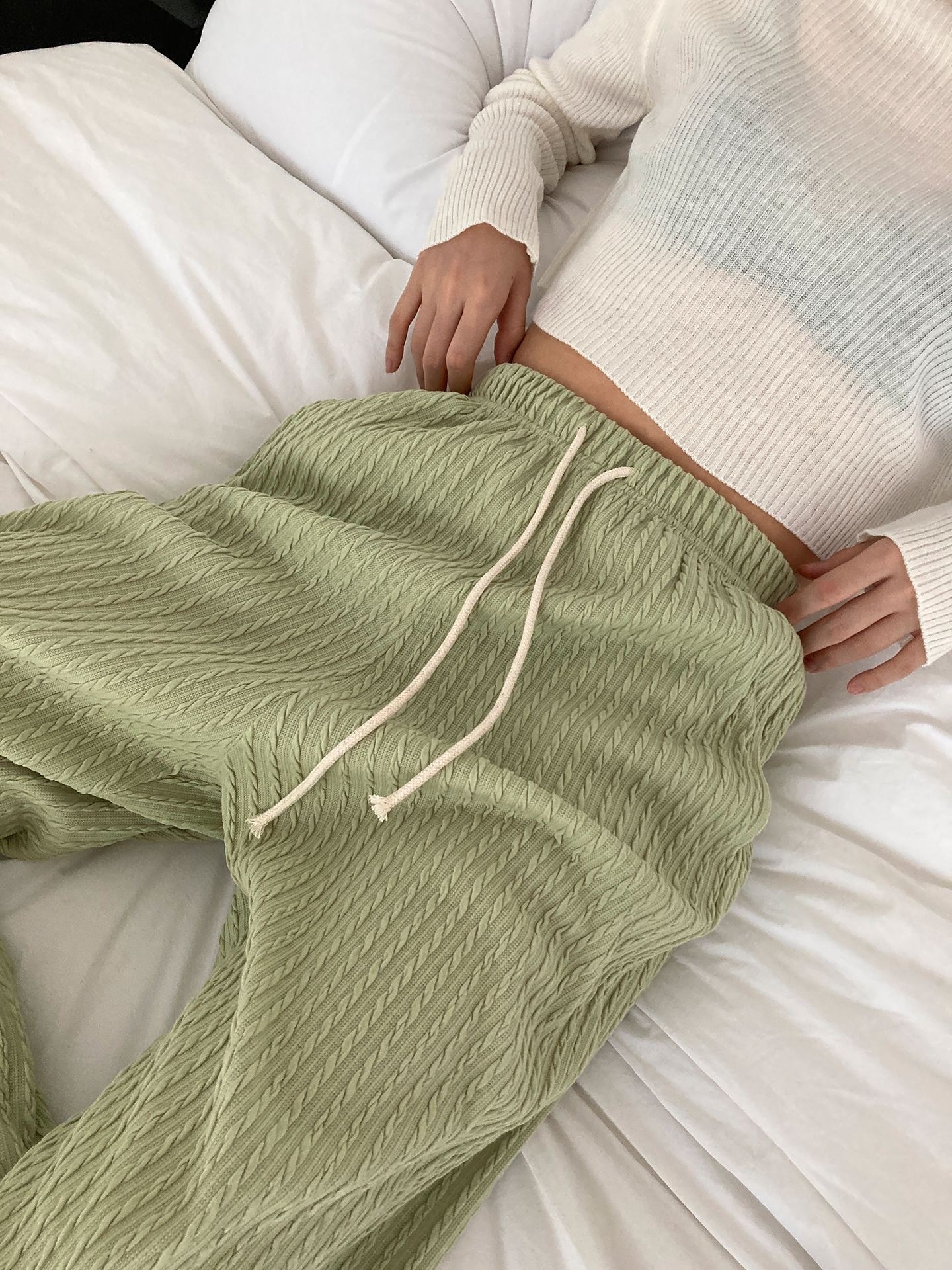 品名:꽈베기조거PT ◎※☞颜色:그레이, 블랙, 아이보리, 연두 ◎※☞尺寸:FREE ◎※☞材质:聚氨酯 5%,聚酯 95% ◎※☞注意事项:只能干洗,只能手洗,不能手洗,机洗,不能使用漂白剂,不能烘干,不能熨烫,不能曲折
