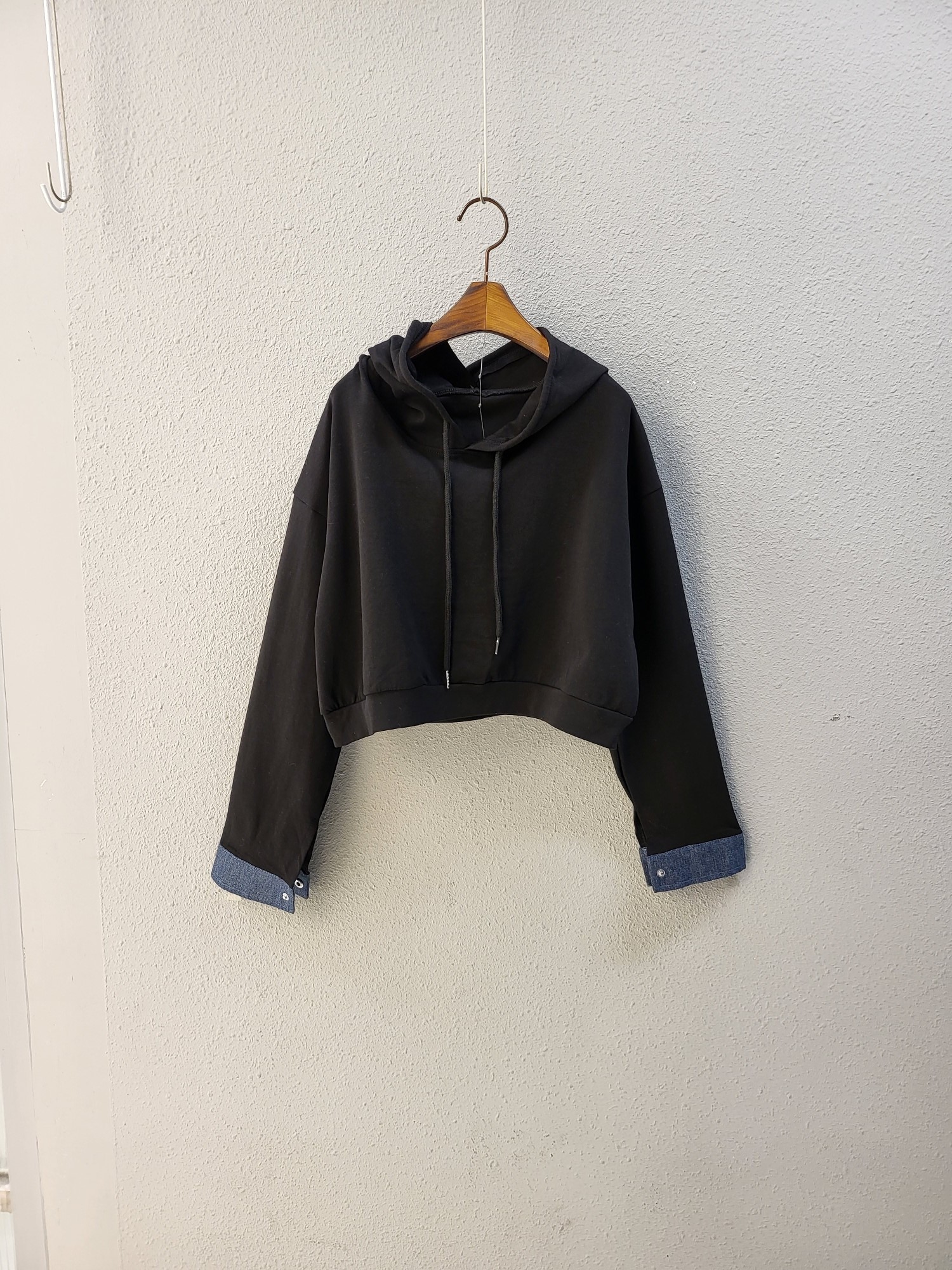 品名:포인트 청배색 후두 티 스커트 세트 ◎※☞颜色:블랙, 카키 ◎※☞尺寸:FREE ◎※☞材质:纯棉 50%,聚酯 50% 翻译
