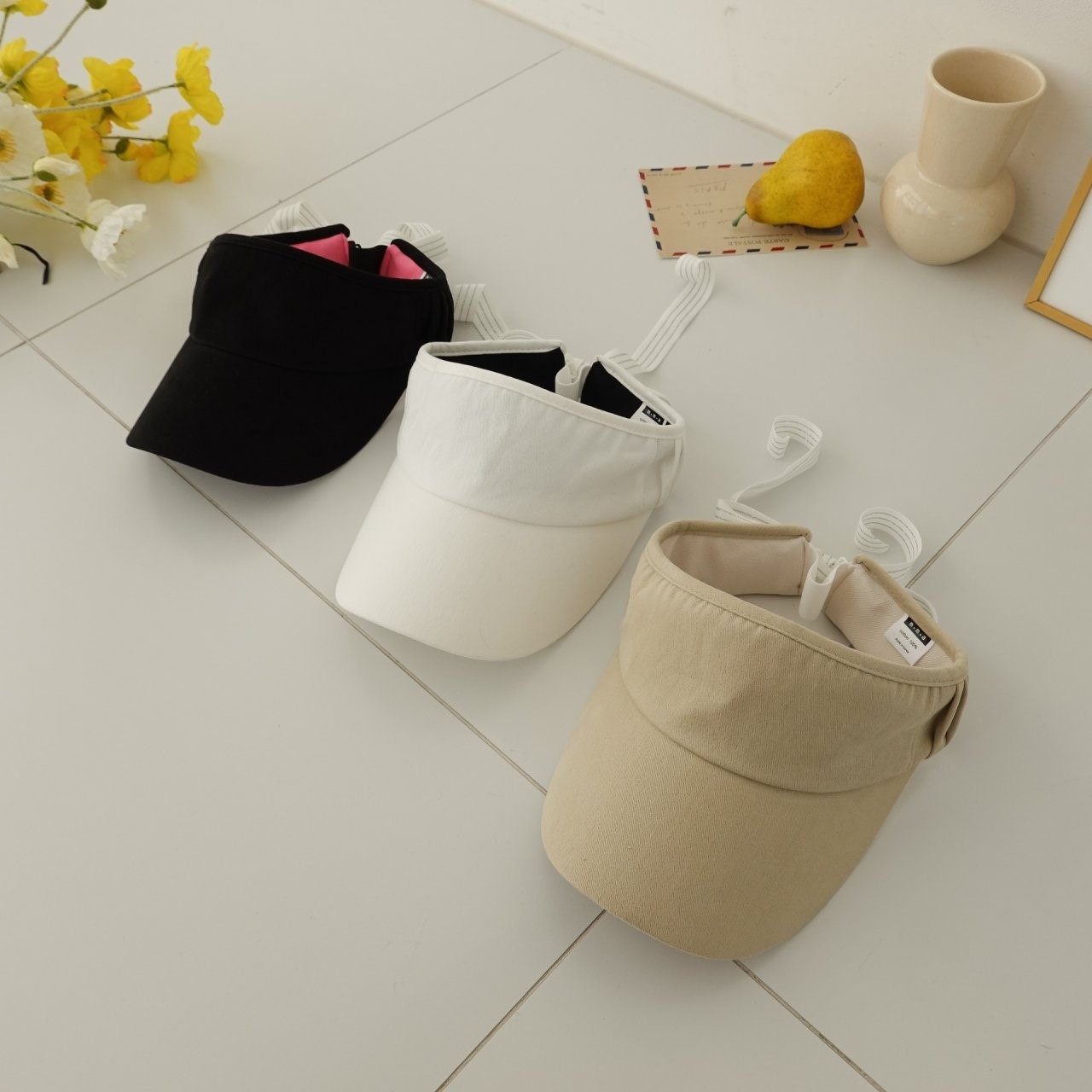 品名:신상 BC1193 플리츠 리본 썬캡 ◎※☞颜色:베이지, 블랙, 화이트 ◎※☞尺寸:F ◎※☞材质:纯棉 100% 翻译