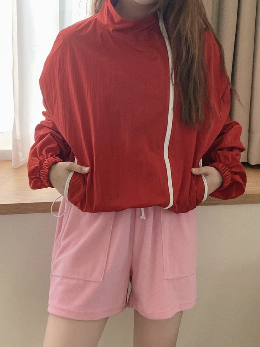 品名:윈드점퍼 바람막이 윈드브레이커 ◎※☞颜色:다크그레이, 레드 ◎※☞尺寸:FREE ◎※☞材质:尼龙 100% 翻译