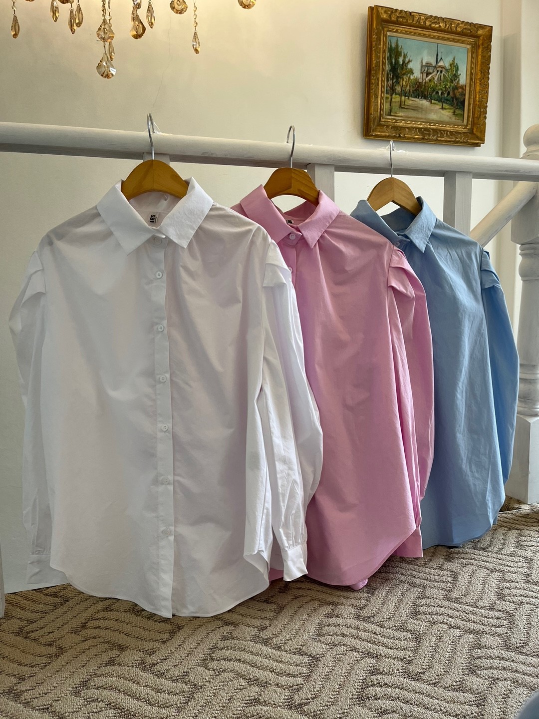 品名:벌룬셔츠 ◎※☞颜色:소라, 핑크, 화이트 ◎※☞尺寸:FREE ◎※☞材质:纯棉 100% 翻译