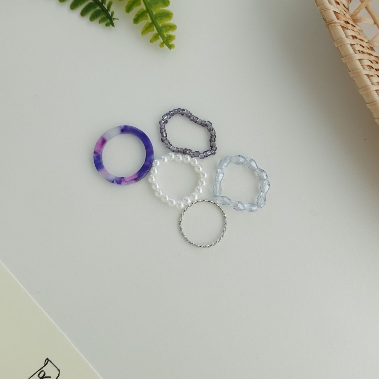 品名:R3007 비즈 반지 세트 (5ea) ◎※☞颜色:블루, 퍼플, 핑크 ◎※☞尺寸:FREE ◎※☞材质:腈纶 0% 翻译
