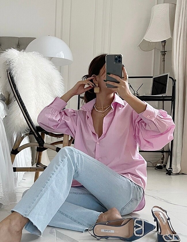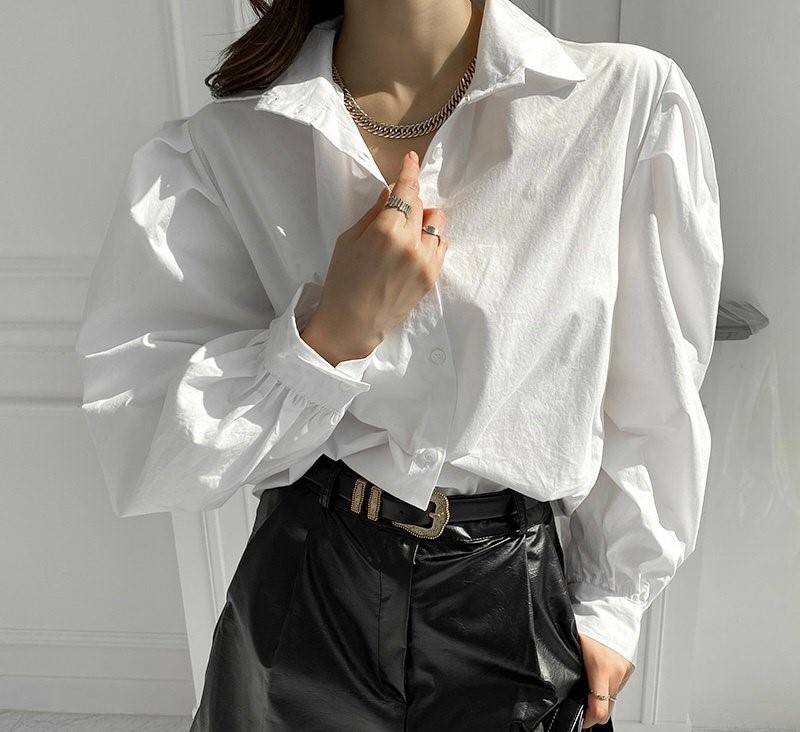 品名:벌룬셔츠 ◎※☞颜色:소라, 핑크, 화이트 ◎※☞尺寸:FREE ◎※☞材质:纯棉 100% 翻译