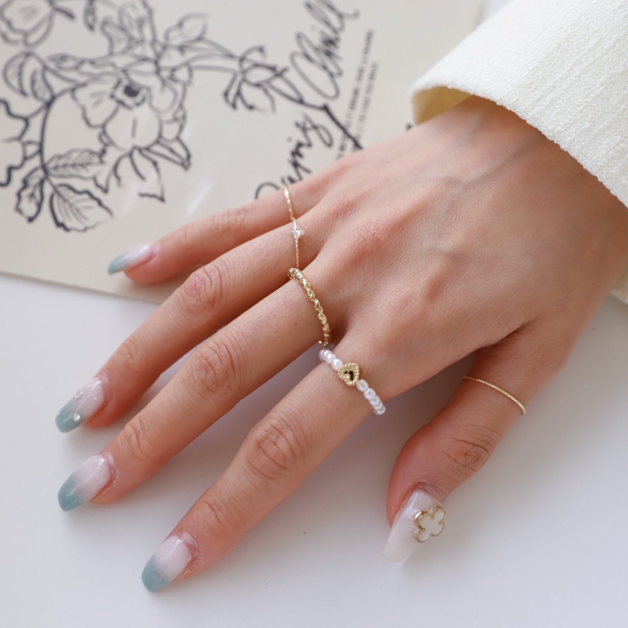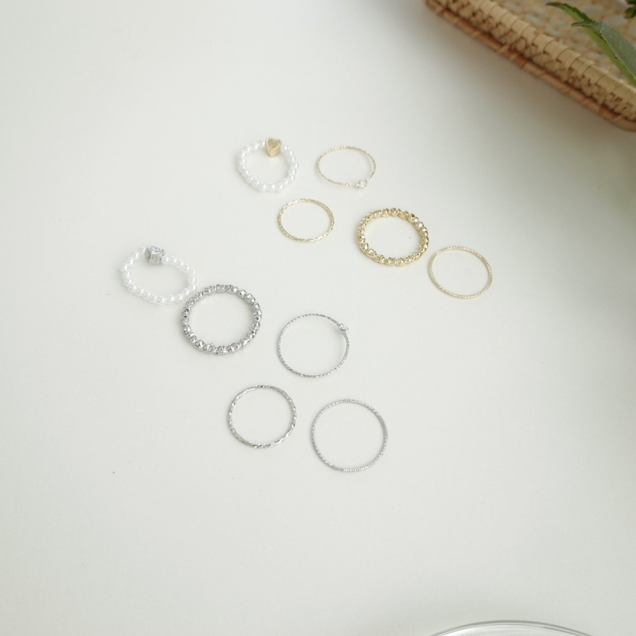 品名:R3008 진주 반지 세트 (5ea) ◎※☞颜色:골드, 실버 ◎※☞尺寸:FREE ◎※☞材质:镀金 0% 翻译