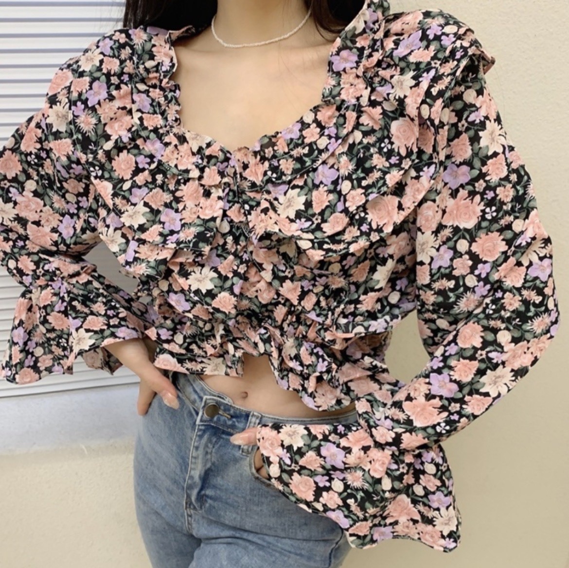 品名:플라워프릴블라우스 #여성상의캐주얼시크섹시로맨틱봄신상간절기 ◎※☞颜色:블랙, 옐로우 ◎※☞尺寸:FREE ◎※☞材质:聚酯 100% 翻译