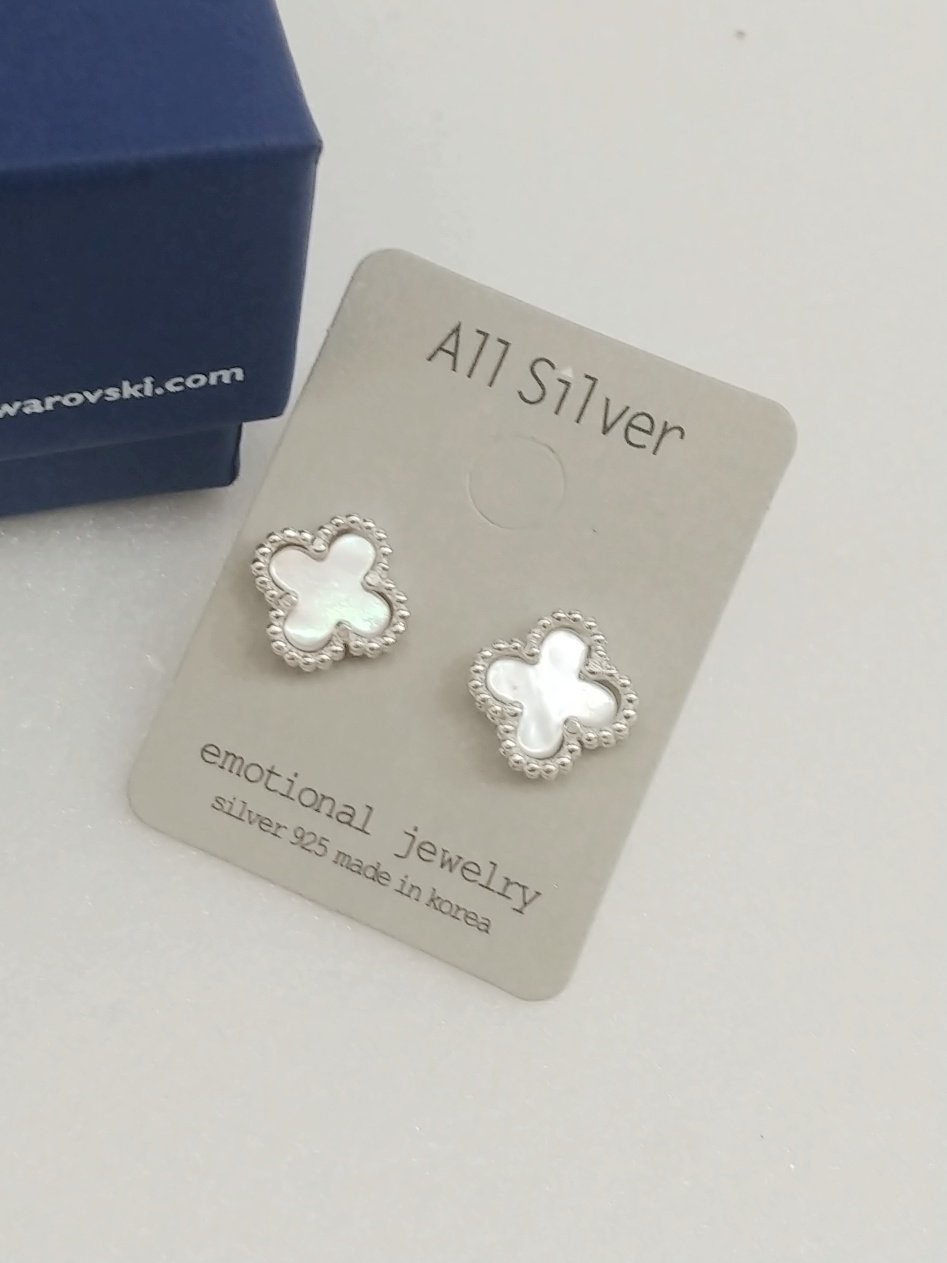 品名:4259#순은귀걸이자개크로버silver925 ◎※☞颜色:실버 ◎※☞尺寸:1CM ◎※☞材质:银 0% 翻译